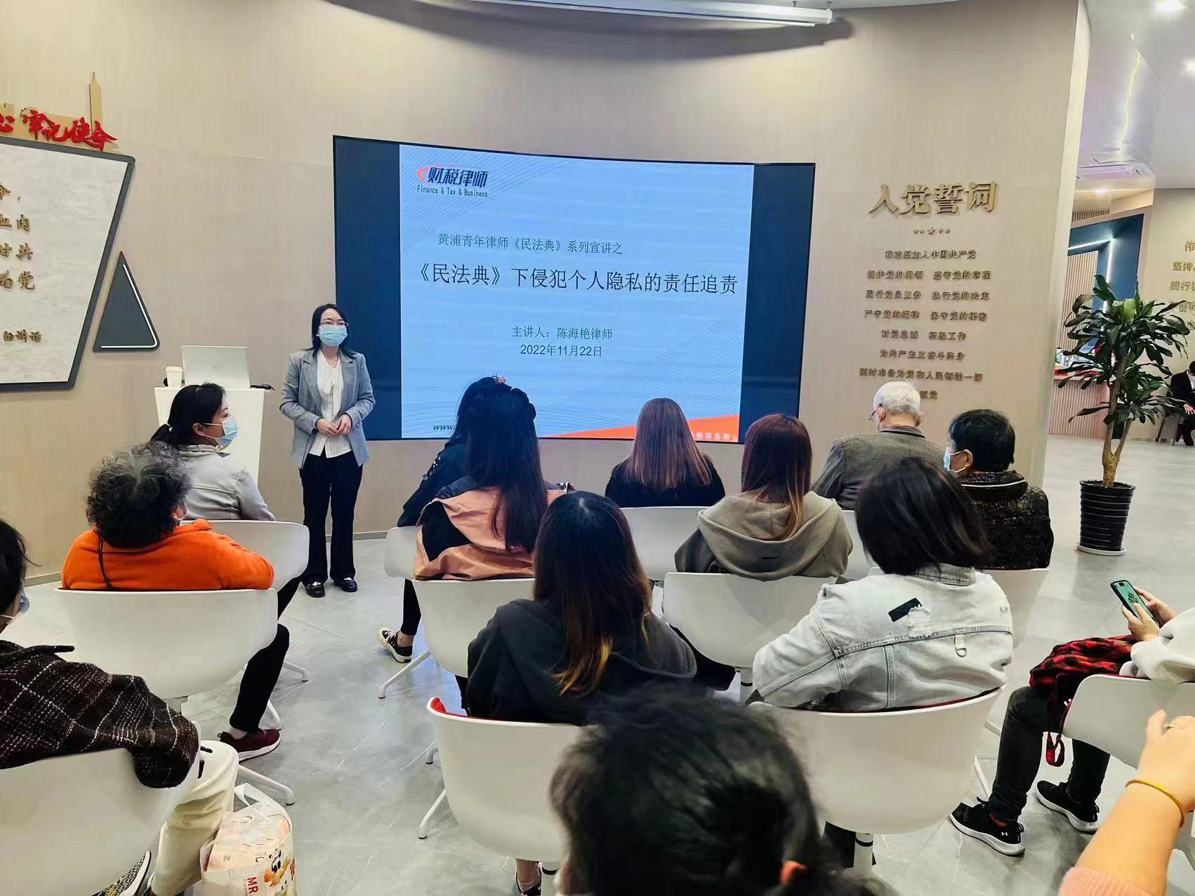 除了线上宣传外,为了打通服务妇女儿童的“最后一米”,近年来,区妇联坚持依托区女律师联谊会的专业力量,根据区域内妇女儿童维权需求,进社区、进楼宇、进党群服务站,在维权阵地开展法宣活动。同时在“三八”国际妇女节、“国际反家暴日”等节点开设辅导讲座、法律咨询、专题培训等,宣传普及《反家暴法》《妇保法》等相关法律知识,从专业律师团队、专业法律咨询、专业普法知识等方面全方位支持支撑妇联妇女儿童维权工作,掀起普法学法的高潮。此外,区女律师联谊会根据区妇联工作需要参与妇女儿童个案处置和跟踪服务,更好地为妇女儿童做好保障。