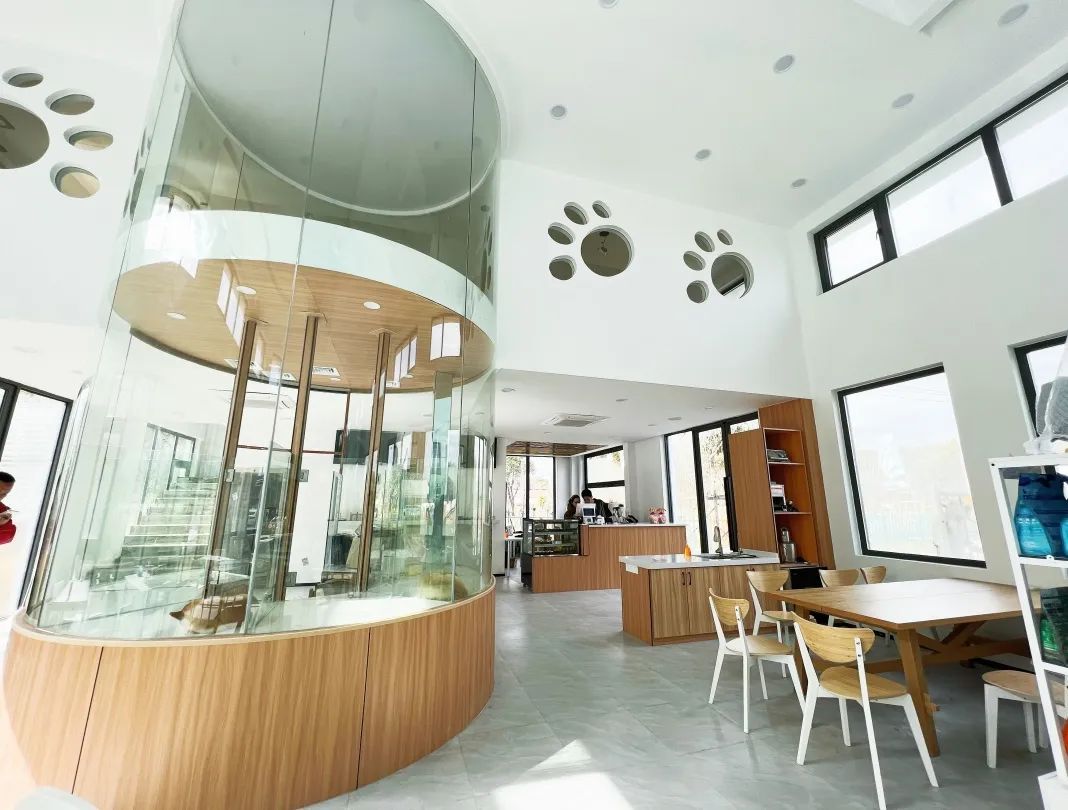 “就是我心目中的理想之地了。”经过简单改造,原本单一的房屋在外墙刷新、破墙造窗后,变得通透明亮,内部也在巧妙设计后被划分成餐饮区、游泳区、洗澡区、宠物教室等多个功能区,焕发出新的生机。仓库周边的配套用地经过重新修整布置后,也为宠物奔跑运动、训练提供了十分宽敞舒适的场地。乐园还将针对研学主题,陆续推出人宠如何正确互动、养宠知识、宠物好习惯养成等相关内容的宣讲与课程。