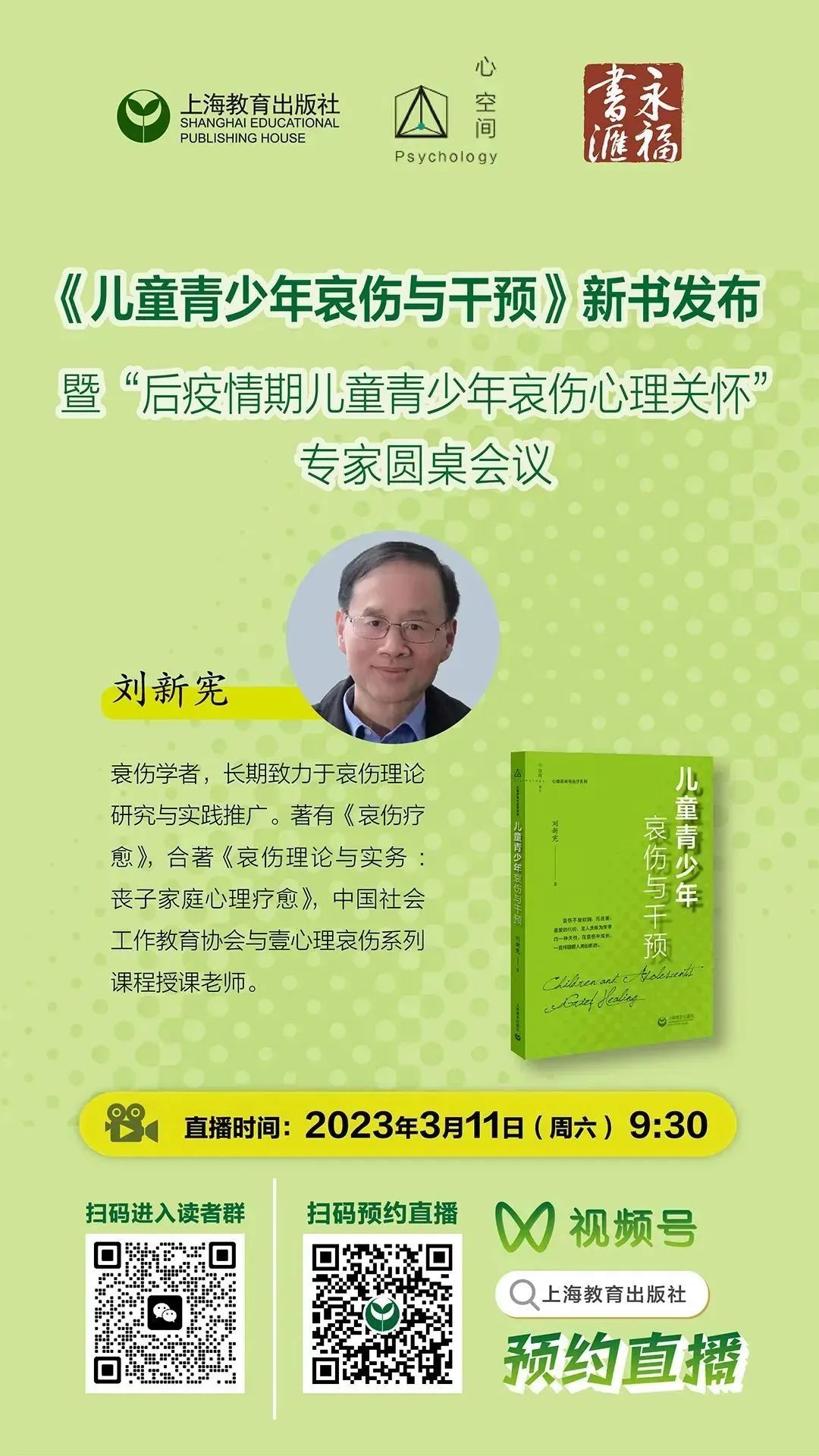 心 空间 | 3月11日直播 《儿童青少年哀伤与干预》新书发布暨“后疫情期儿童青少年哀伤心理关怀”专家圆桌会议