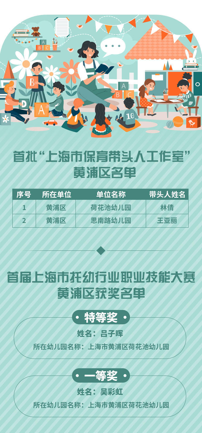 在3月8日举行的首批“上海市保育带头人工作室”启动会暨首届上海市托幼行业职业技能大赛表彰会上传出喜讯:黄浦区荷花池幼儿园林倩和思南路幼儿园王亚丽入选首批“上海市保育带头人工作室”名单;黄浦区荷花池幼儿园吕子晖和吴彩虹分获首届上海市托幼行业职业技能大赛保育员组别特等奖和一等奖。