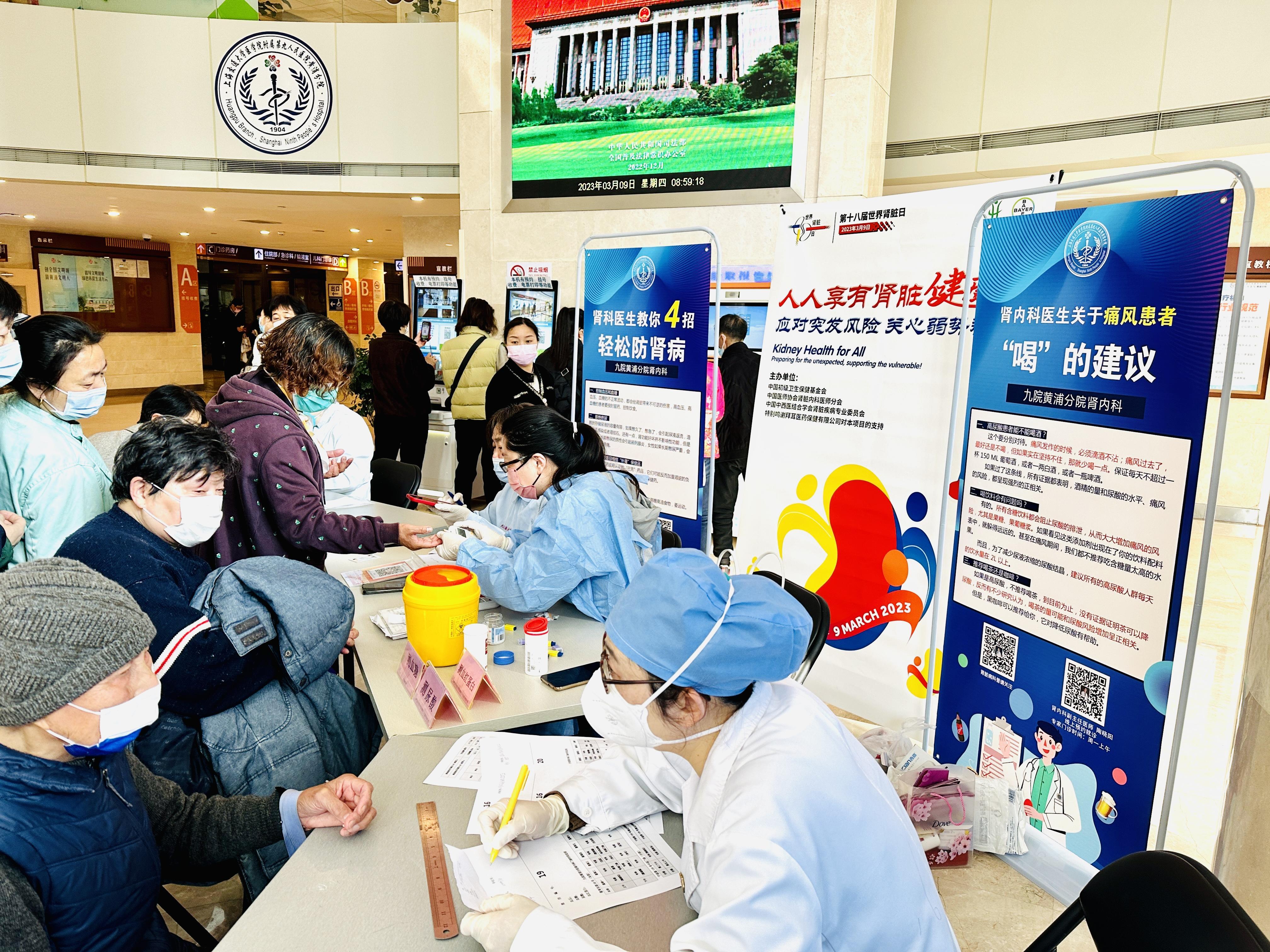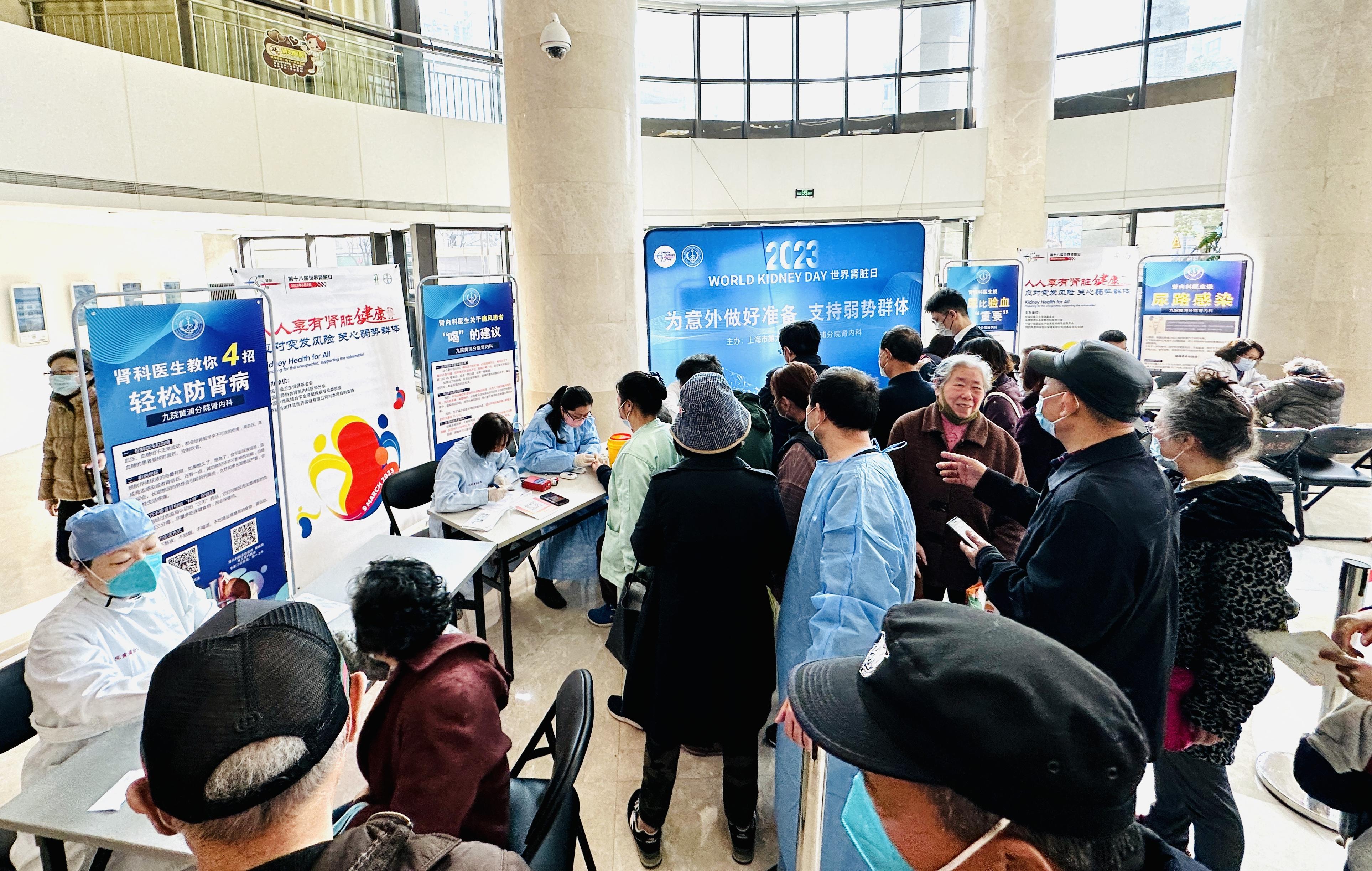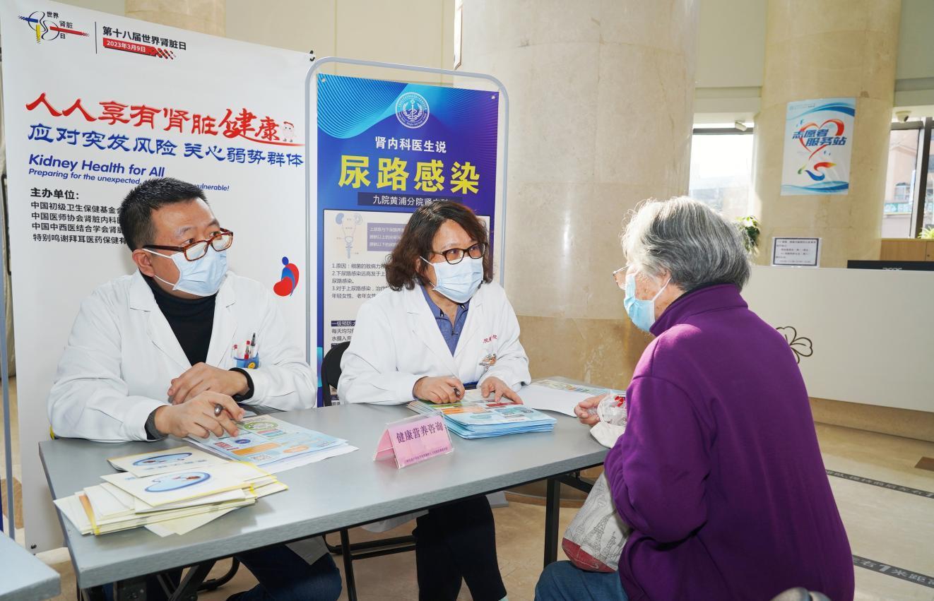今天(3月9日)是第18个世界肾脏日。在九院黄浦分院的门诊大厅内,一场名为“人人享有肾脏健康--为意外做准备,支持弱势群体”的线下活动,吸引了不少周边居民前来寻医问诊。