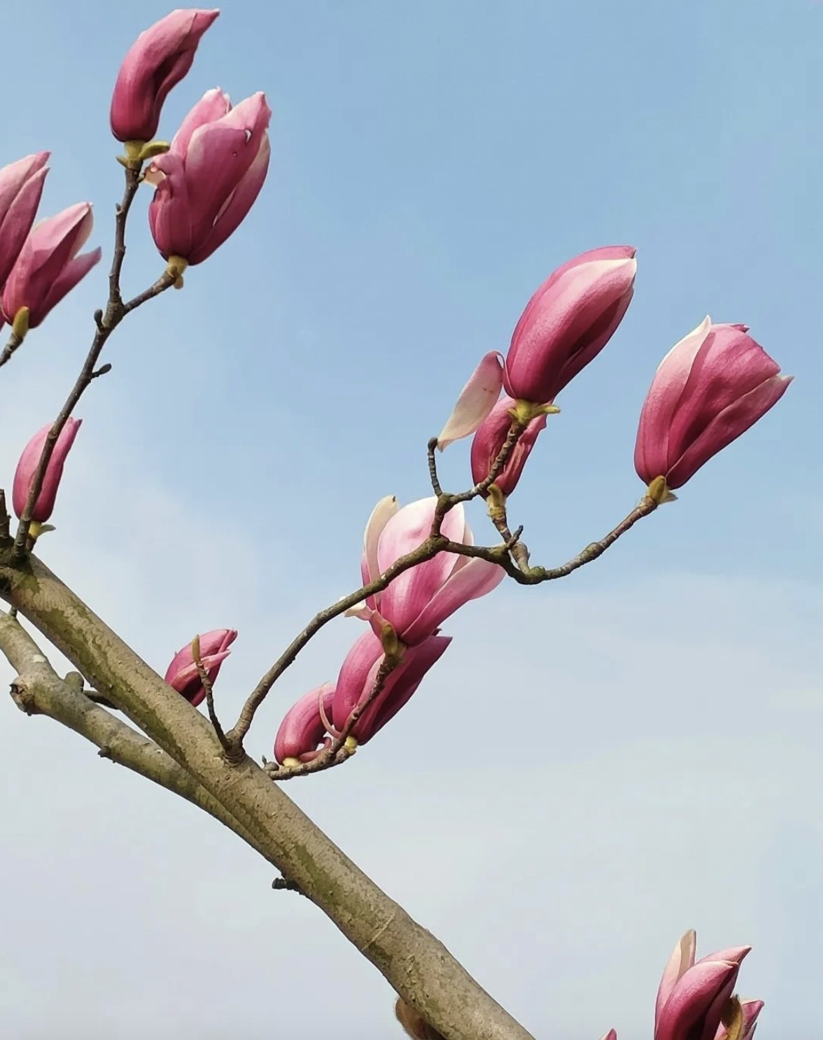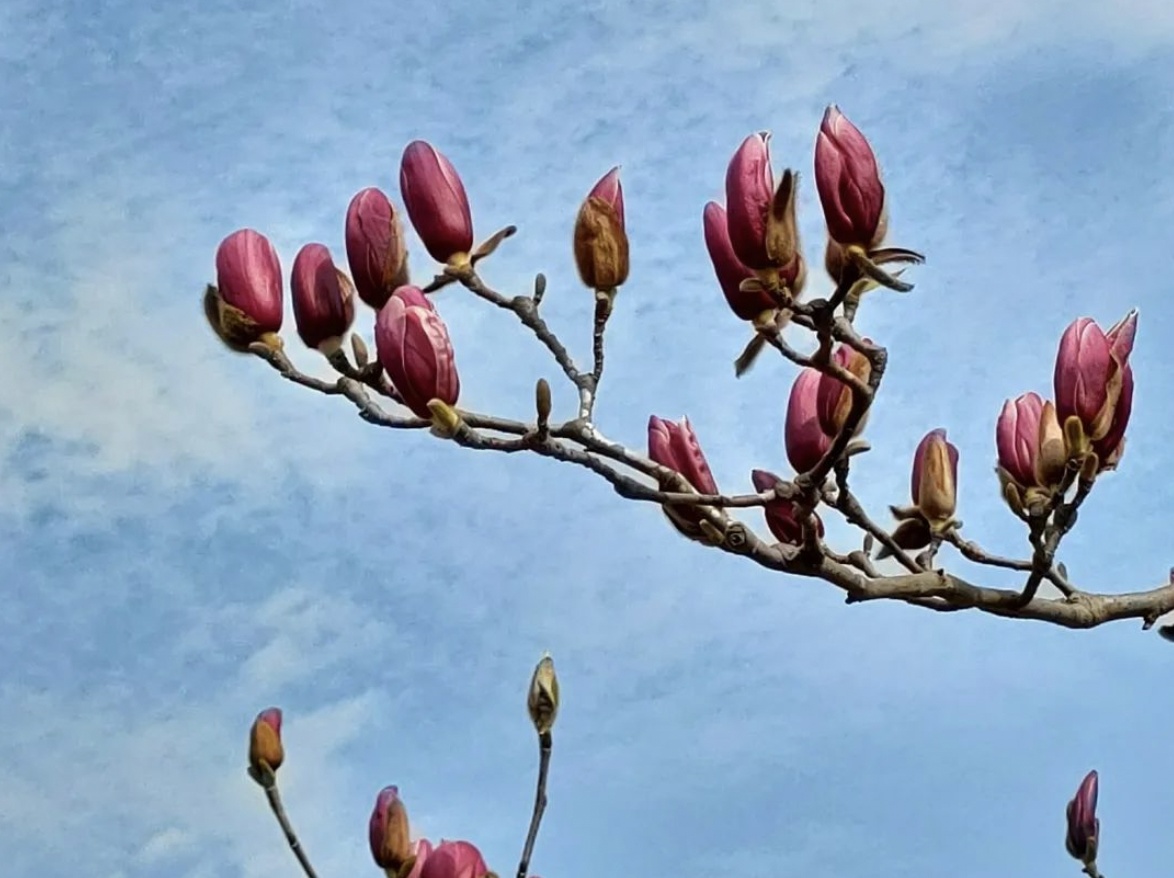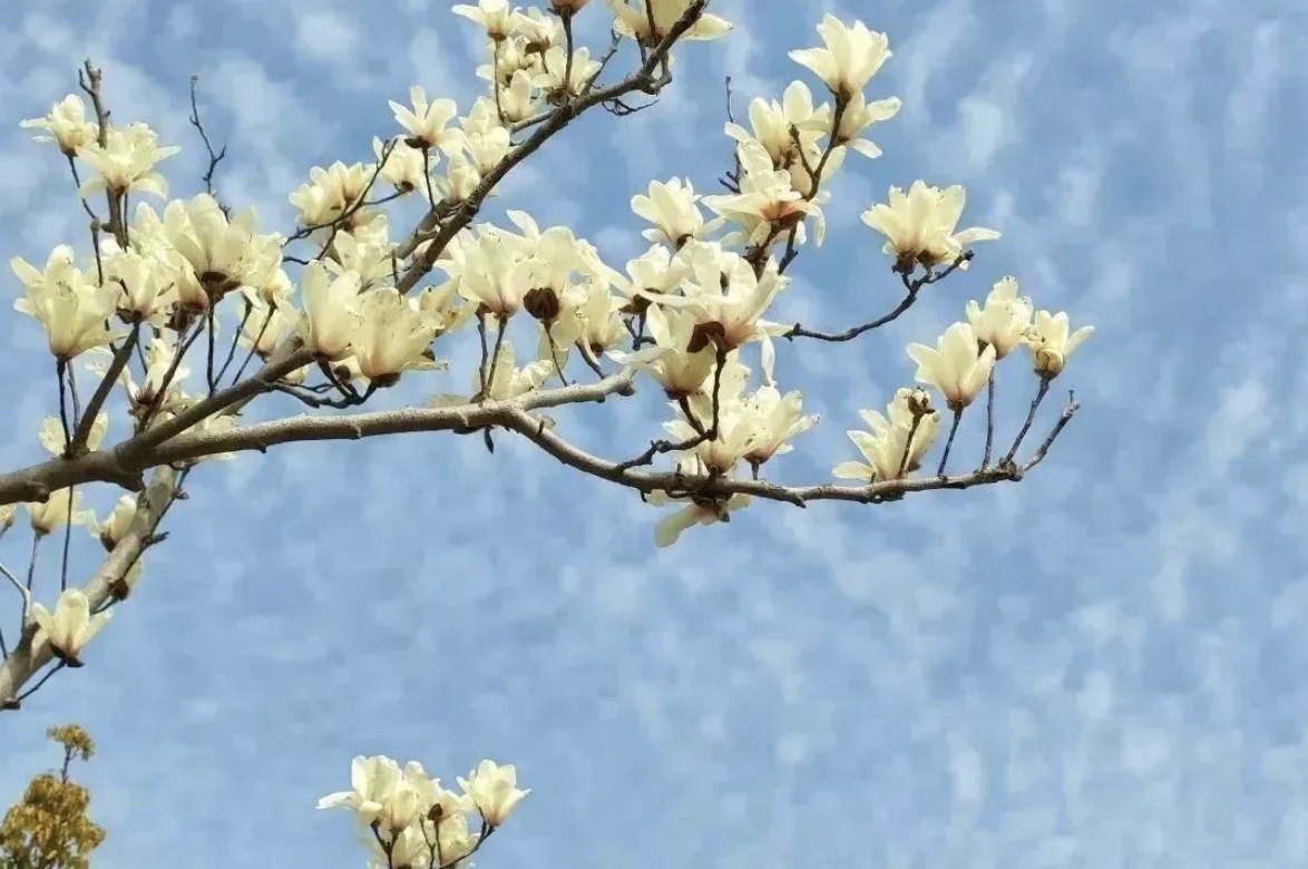 优雅的玉兰家族很是庞大,在公园里,除了白玉兰外,也能欣赏到紫玉兰、二乔玉兰、星花玉兰等盛开的花朵。