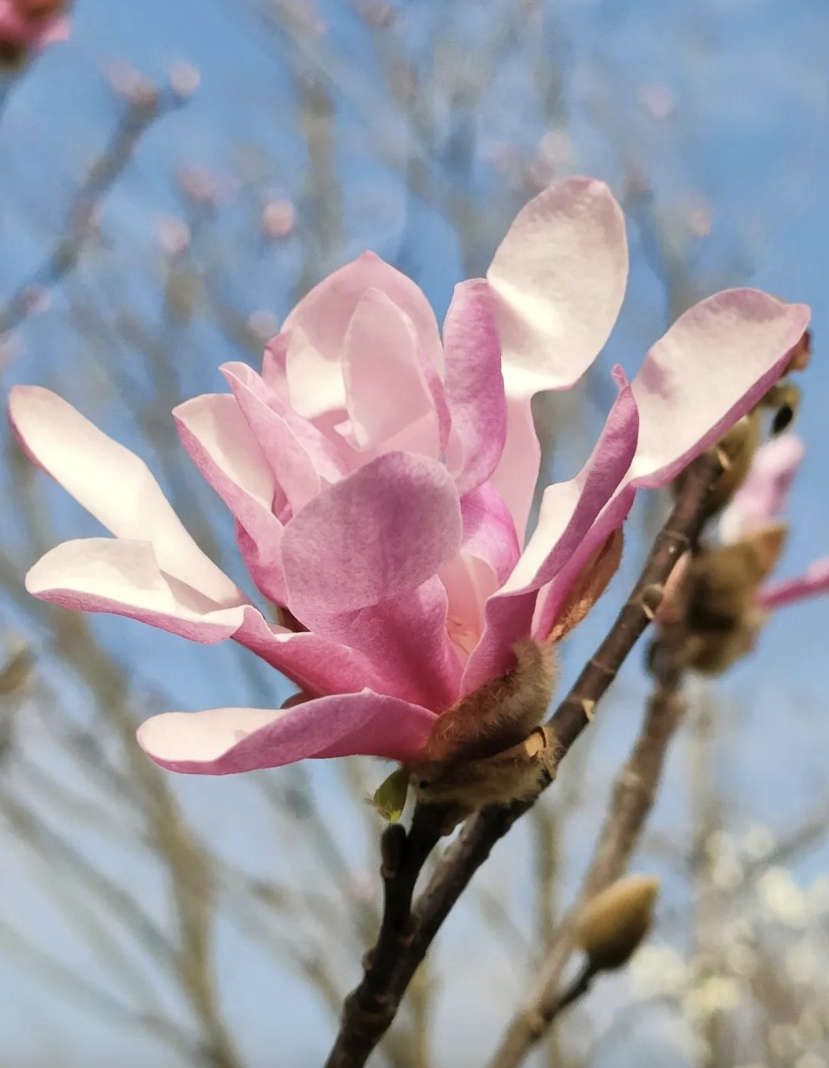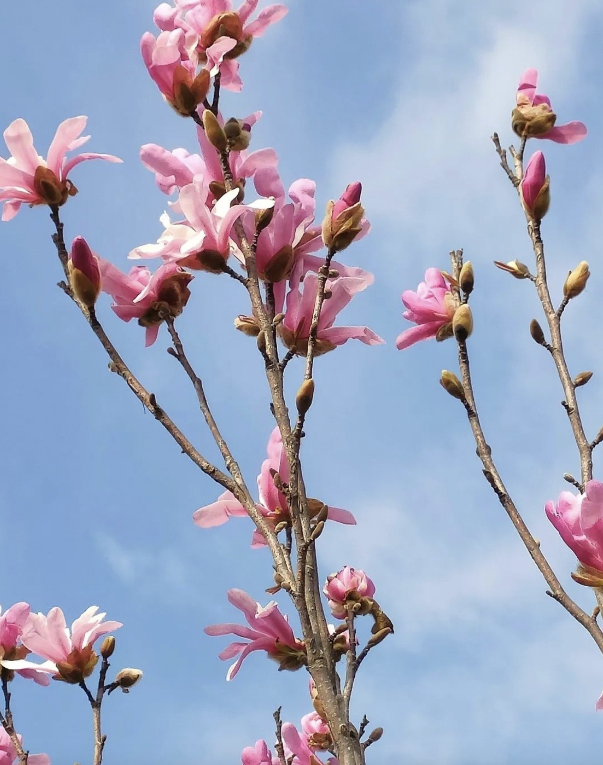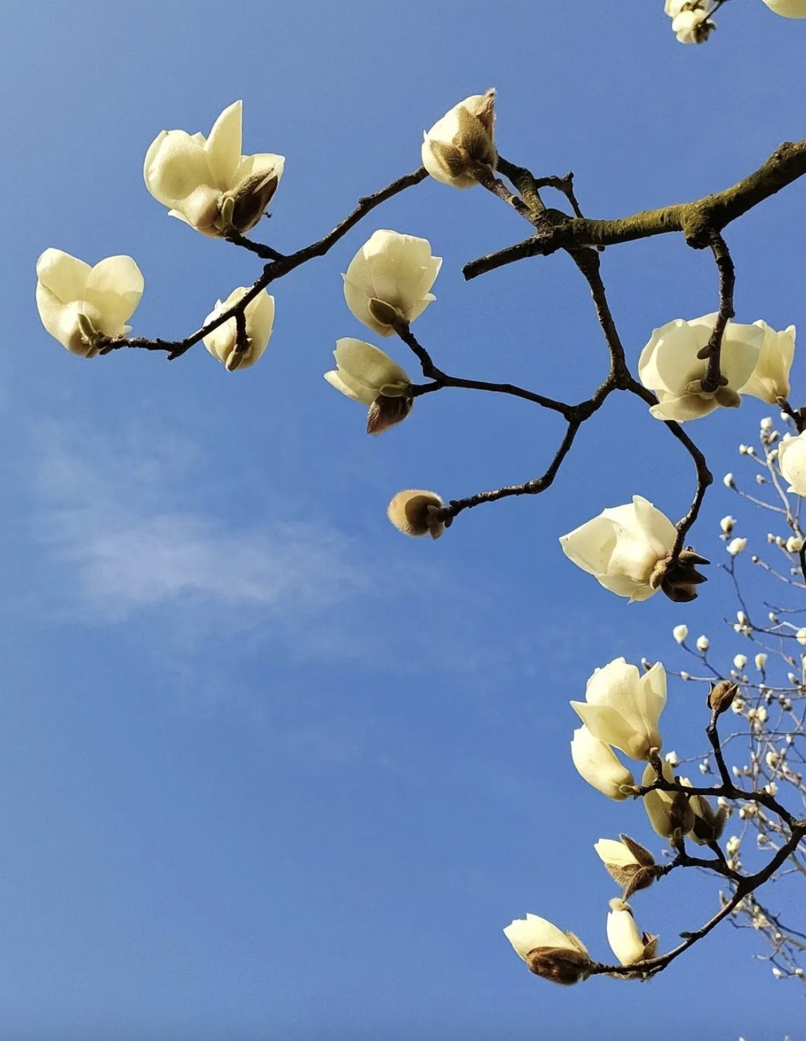 优雅的玉兰家族很是庞大,在公园里,除了白玉兰外,也能欣赏到紫玉兰、二乔玉兰、星花玉兰等盛开的花朵。