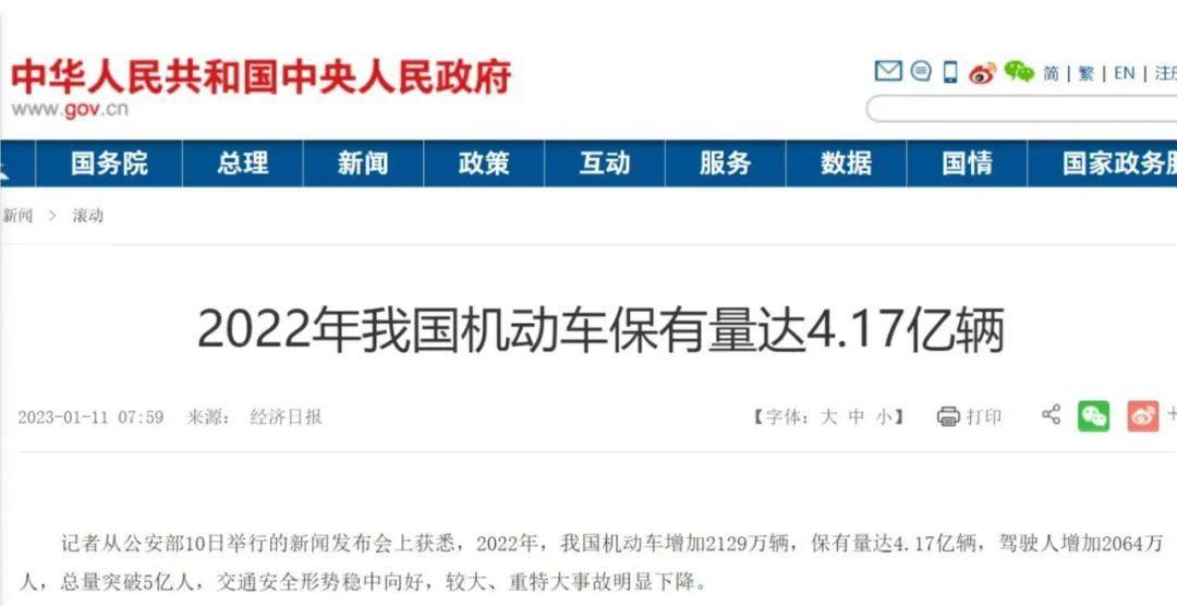 统计数据显示,2022年我国机动车新增2129万辆,保有量达4.17亿辆。