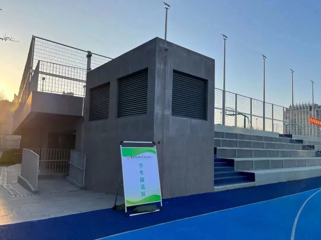 值得一提的是,在停车库顶板由足球场、环形跑道、篮球场、排球场、手球场、遮阳棚及看台组成。这样的设计,让停车库和学校相连,却又可以单独分隔,减少对学校教学秩序的干扰。