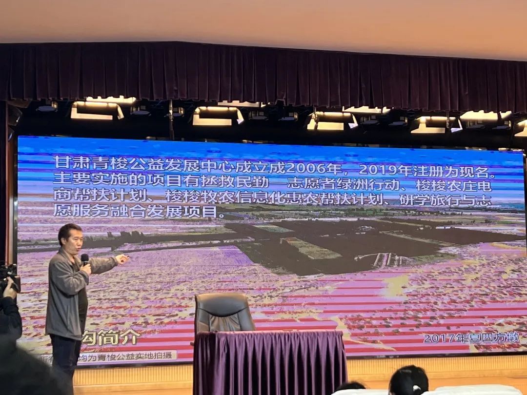 活动主讲人是来自甘肃省民勤县的马俊河,目前担任甘肃省青梭公益发展中心执行主任。很多环保界人士,都听说过这位“种梭梭的马哥”。自2006年起,他发起成立拯救民勤志愿者绿洲行动,号召越来越多的城市志愿者来到沙漠,种植适宜当地生长的梭梭,为家乡带来一抹绿色。