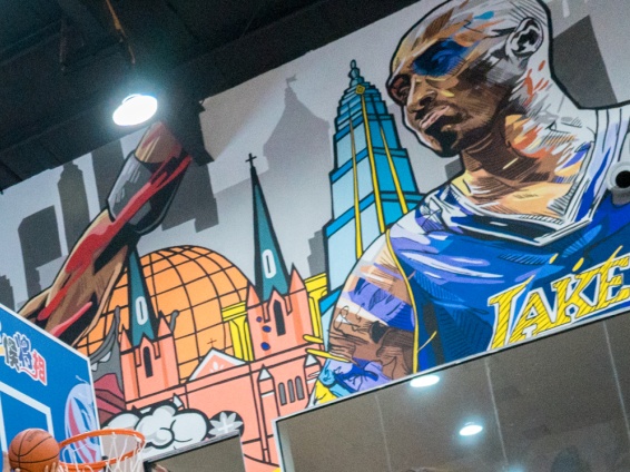 场馆的装修设计靓丽前卫,融入了许多潮流酷炫的漫画元素,一幅幅漫画挥洒在篮球场的墙面上,把整体空间衬托得充满激情活力和时尚潮流感。