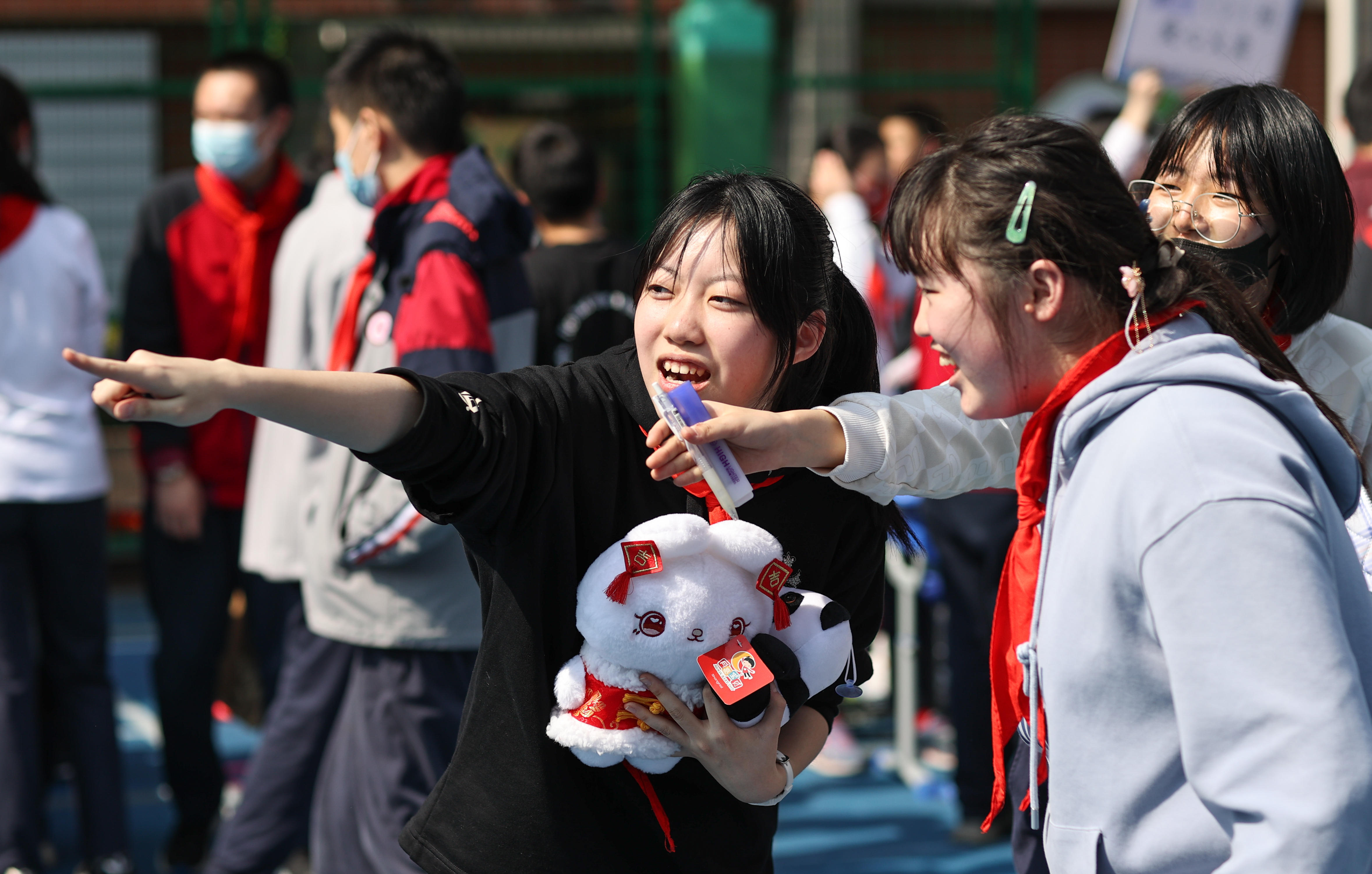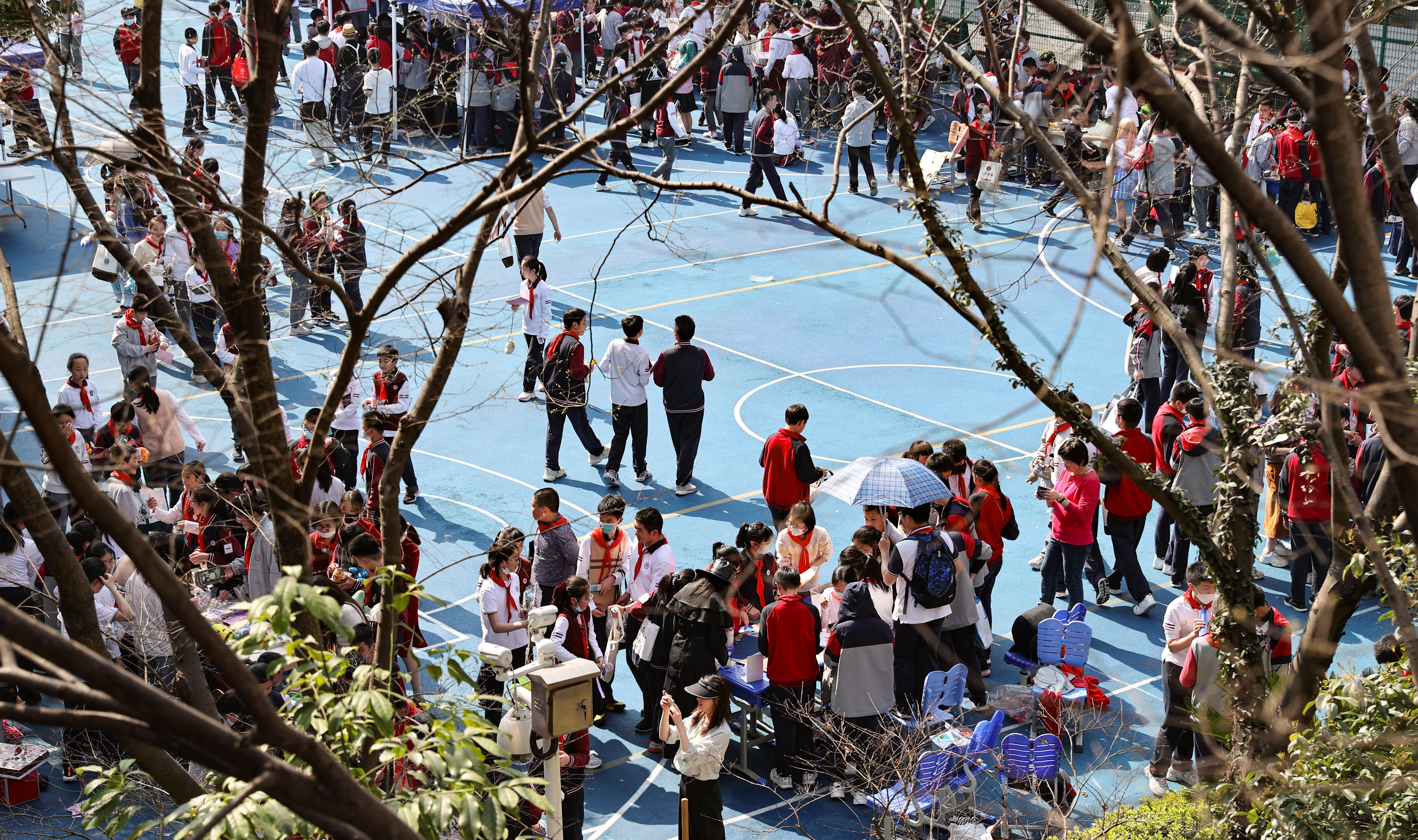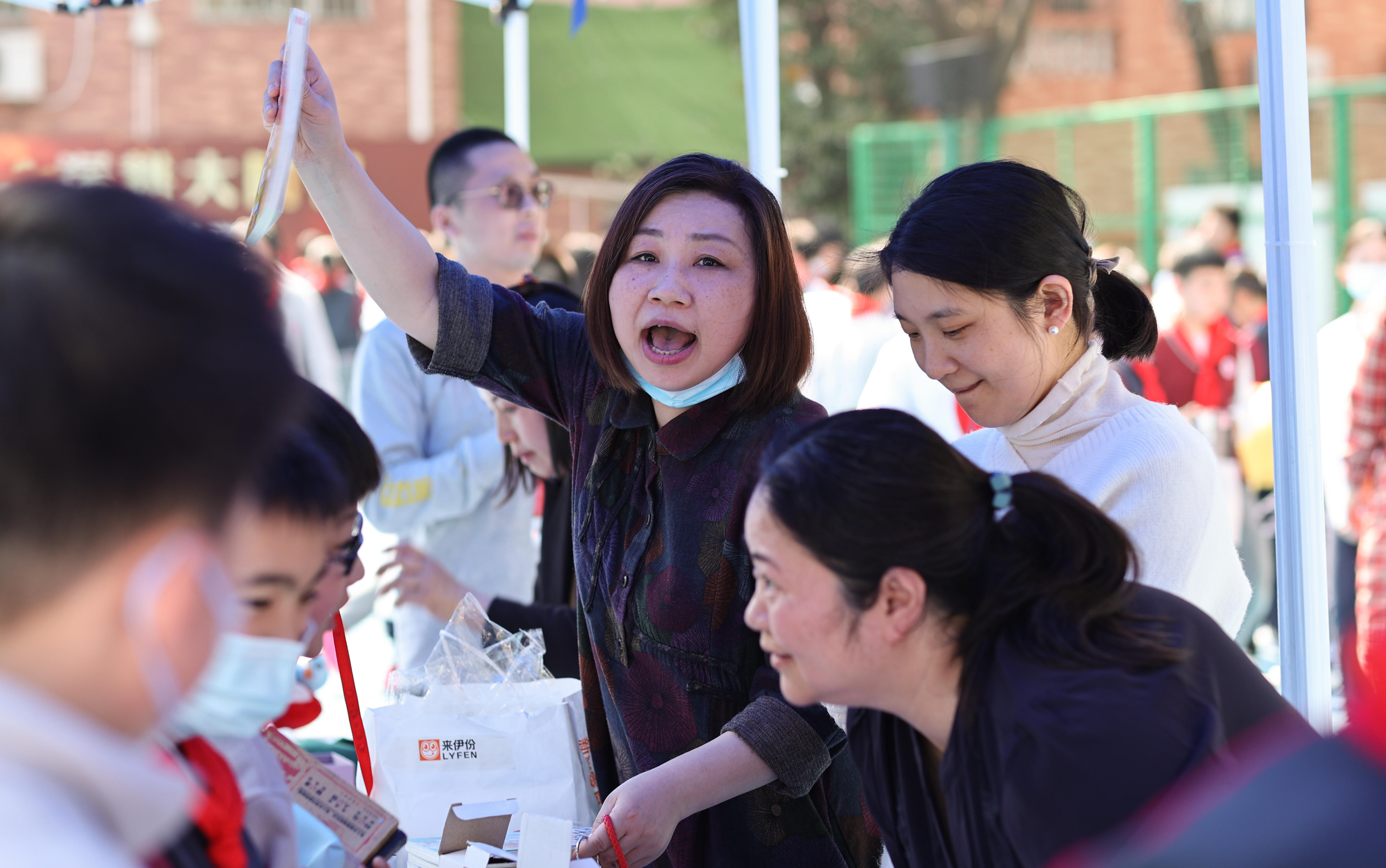 义卖活动现场气氛热烈,有的中队采用了抽奖机制,吸引了一大批顾客;有的中队DIY学校文创产品,大受欢迎,一时间一抢而空;老师们也尽力叫卖,各年级组的展台门庭若市……