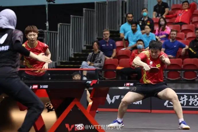 混双比赛中,樊振东/王曼昱首战中遇到挑战。在对阵埃及组合奥马尔/梅谢里夫的比赛中,樊振东/王曼昱首局13:15先负,第二局也被对方率先拿到局点的情况下,后来居上,并最终3比1赢得胜利。