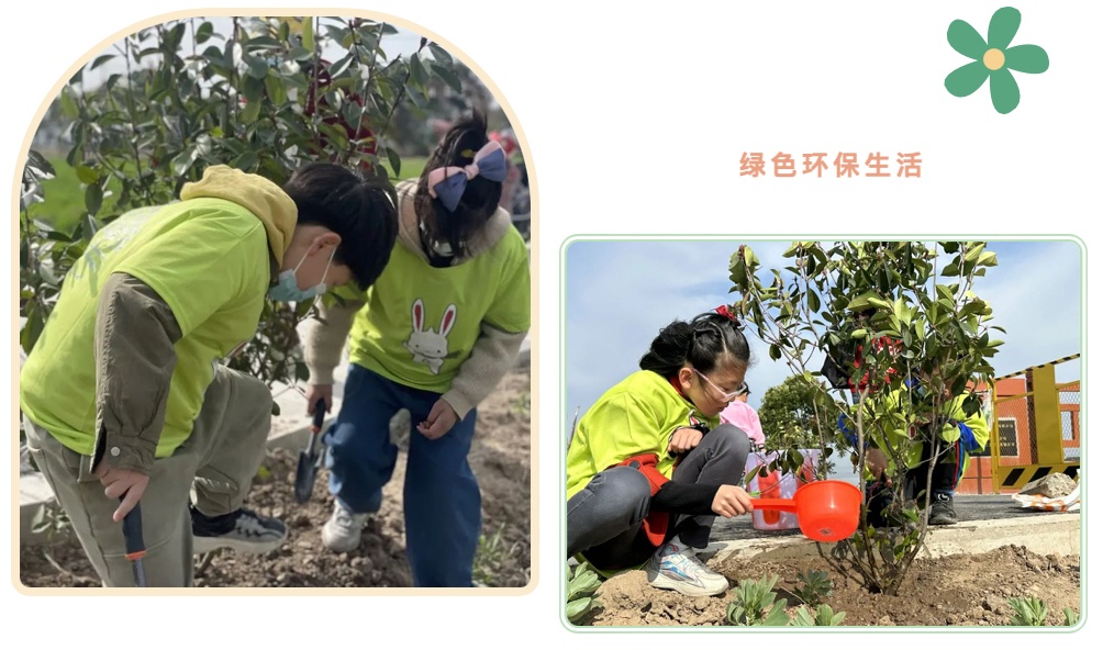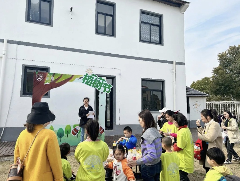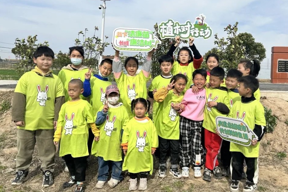 现场的每个小朋友都干劲十足,把一株株树苗埋进土坑内,忙得不亦乐乎。栽好的树苗迎风而立,呈现出一派生机盎然的景象。