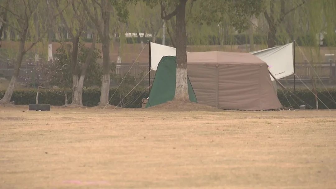 上午11点,记者在高新区的乐赛金水湖露营基地看到,诺大的草坪上,看不到几顶帐篷,只有零星几个人在放风筝。