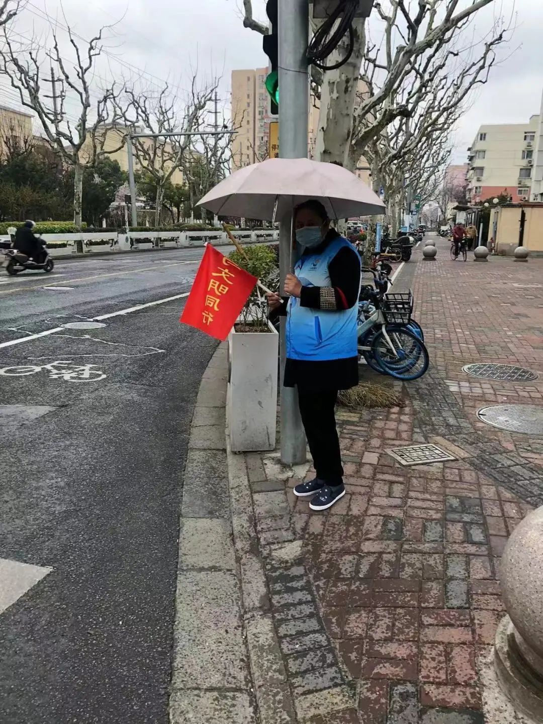 为进一步提升广大居民文明交通意识,打造文明安全、绿色环保的交通环境,志愿者走上街头,拿着“与文明同行”小红旗站在路口,大力宣传文明交通礼仪,主动劝阻不文明交通行为,号召大家积极争做文明交通、绿色出行的倡导者,用交通文明引领城市文明。