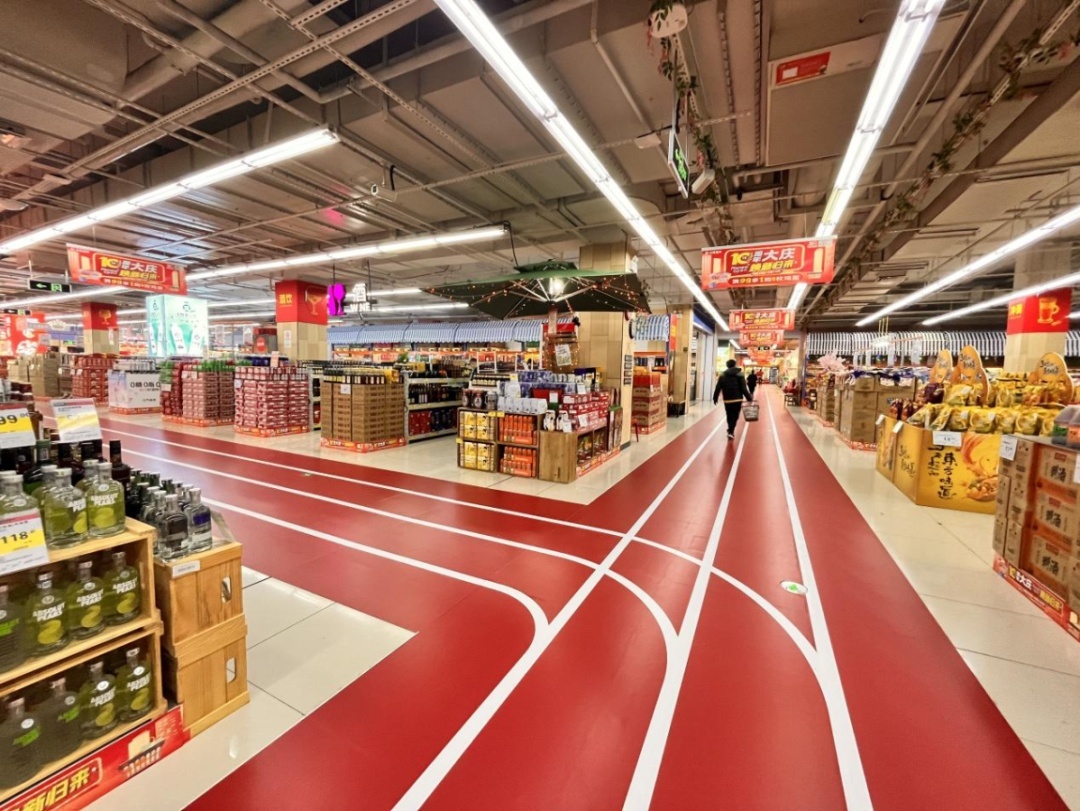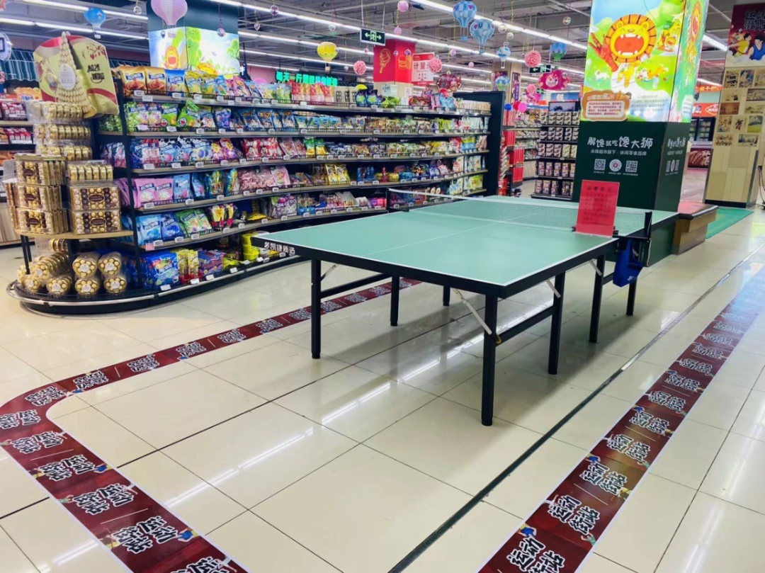 同时,卖场内新增了许多运动设施,如“漫步人生”的300米健步道、乒乓球台、飞镖、立定跳远等,充满了新鲜与活力。