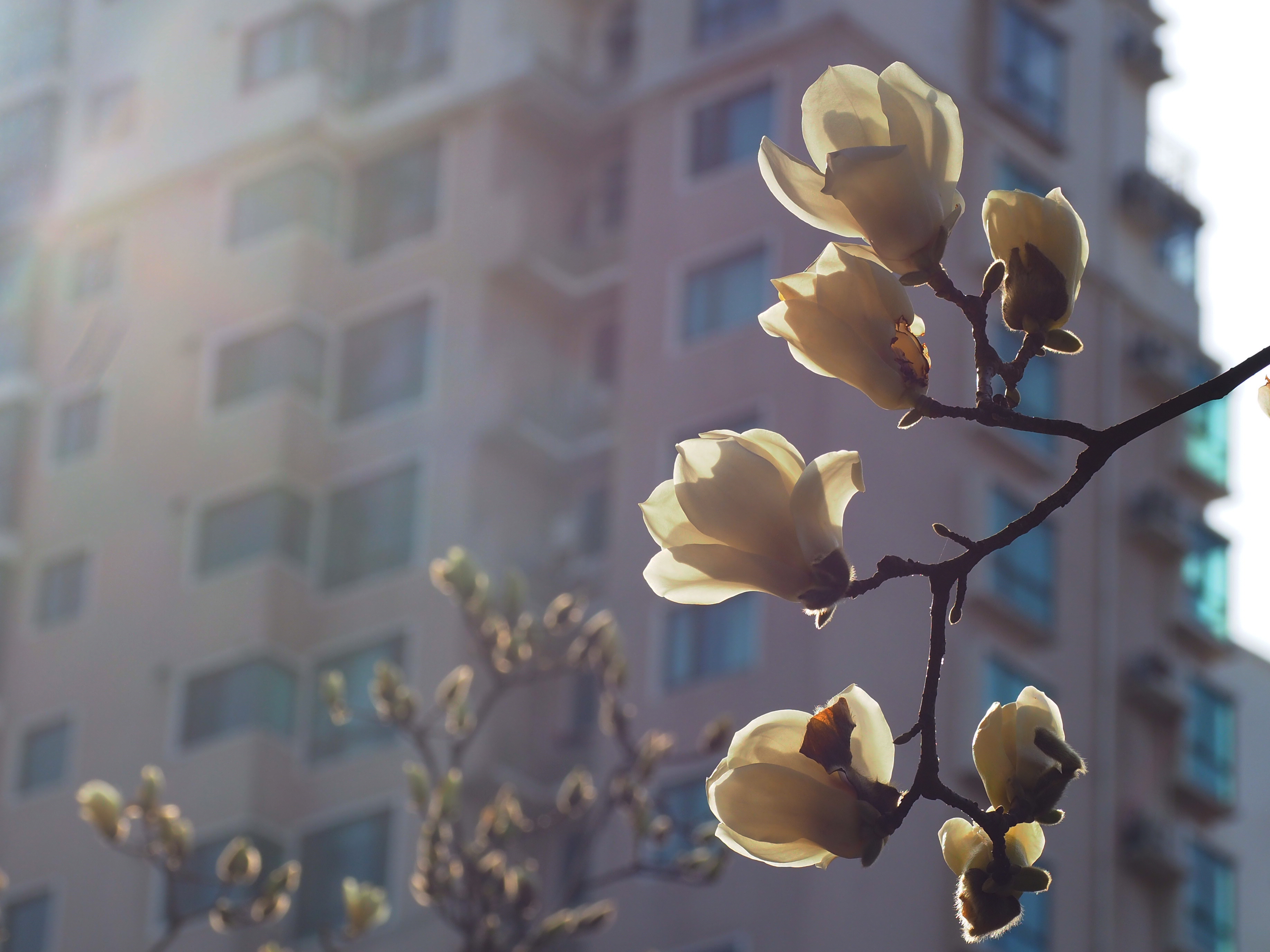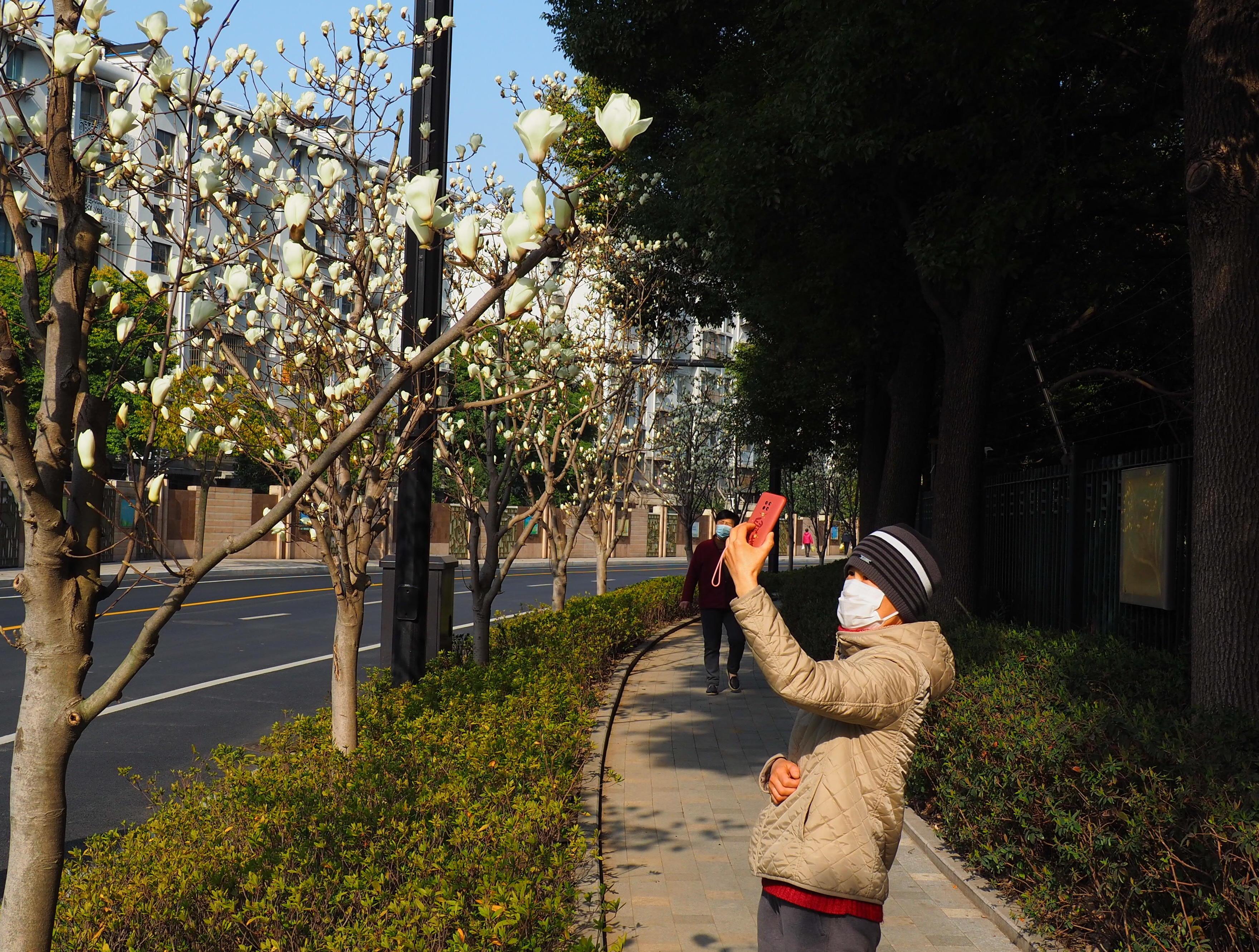 市民正在拍玉兰花