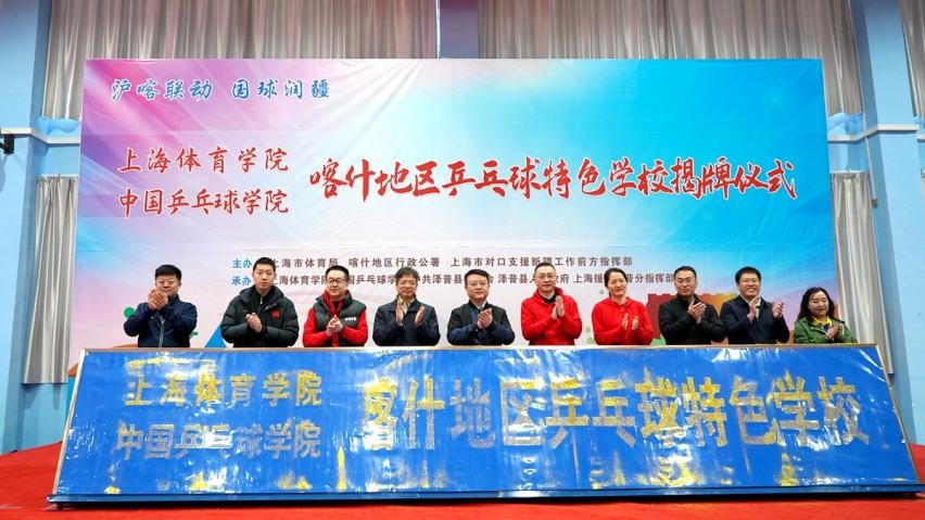 3月7日至9日,在上海市援疆前指助力推动下,上海体育学院、中国乒乓球学院喀什地区乒乓球特色学校揭牌仪式分别在巴楚县第二小学、泽普县第二小学、莎车县第三小学、叶城县恰尔巴格镇中心小学举行。