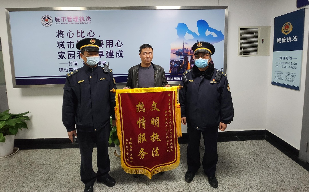 执法人员有“温度”的执法,让初次来上海经营的该店家老板很感动,之后,还为中队送上了感谢锦旗。