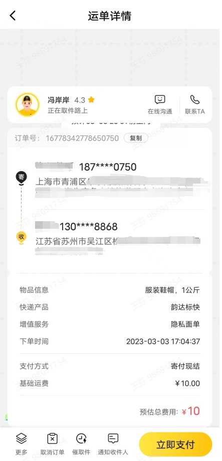 揽收快递网点实时收到推送的揽件信息,上门收取快递,经过中转后送达派件网点(吴江区);
