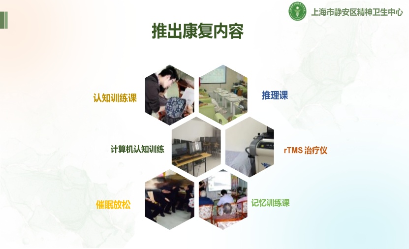 目前,静安区精神卫生中心开展了以下康复课程,科学、细致的进行康复训练,提升认知和记忆功能,有需要的居民也可门诊咨询。