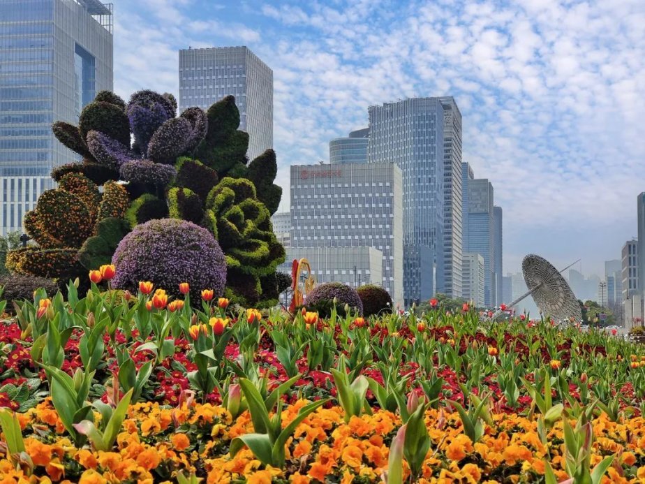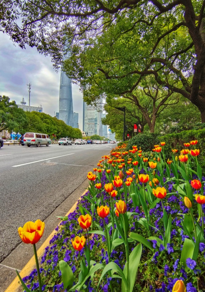 迎着和煦的春风,郁金香在浦东街头亭亭玉立,一起来赏吧!