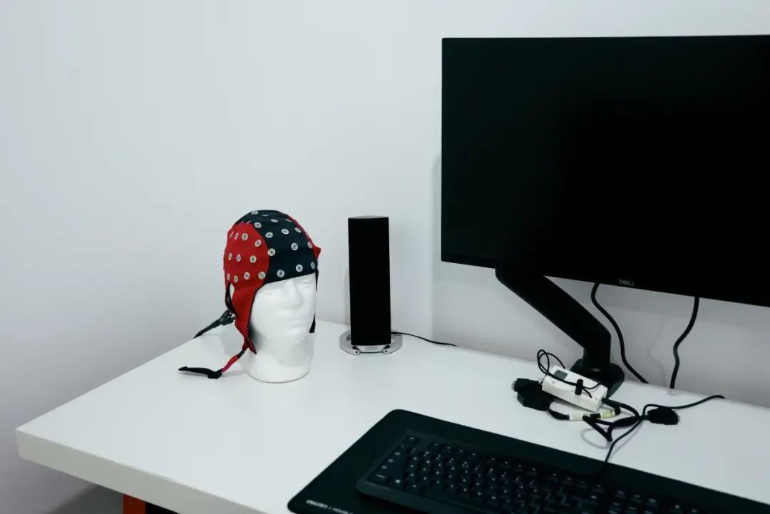 在脑认知研究平台,一个布满金属电极的帽子引人注目。“这是一个128导的脑电电极帽。” 老龄研究院卢洋助理研究员介绍,脑电波是大脑神经元活动所产生的电场变化的外在表现,反映了人的心理活动信息,而这顶轻便的电极帽,是采集脑电波信号的“好手”,在它的鼎力相助下,科研人员在一毫秒内就能采集到一次神经数据。“很适合研究个体的社会互动、情感交流以及一些学习行为。”
