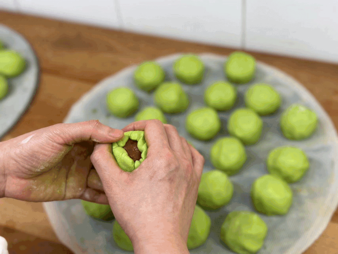 值得一提的是,德兴馆的青团全部采用手工制作,每个口味的青团在制作团子的过程中都会加入麦青汁,与艾草青团同样有淡淡的香气,同时颜色更加绿油油。