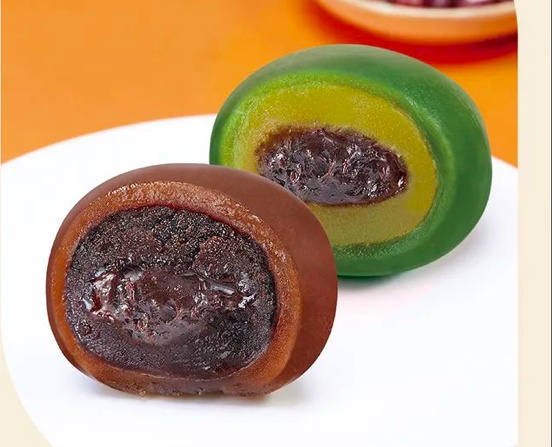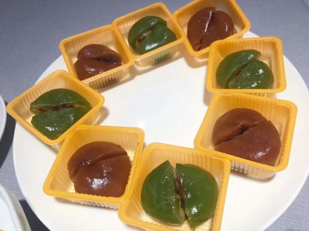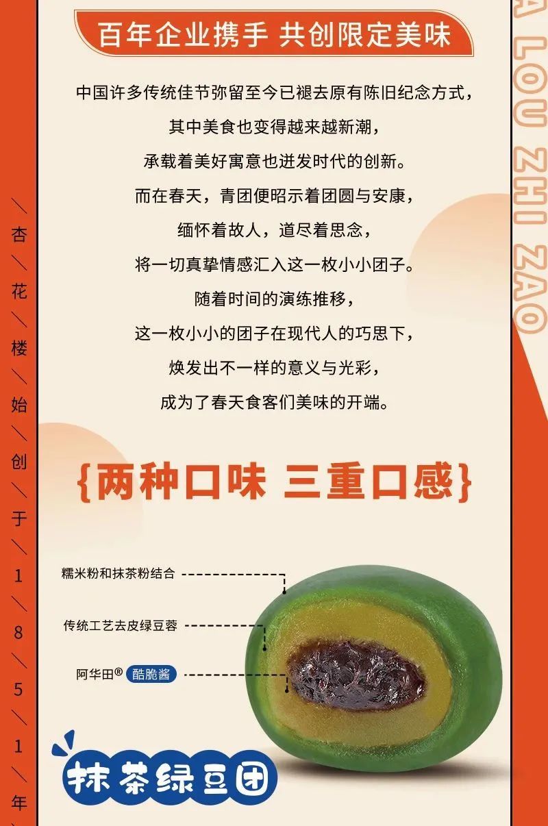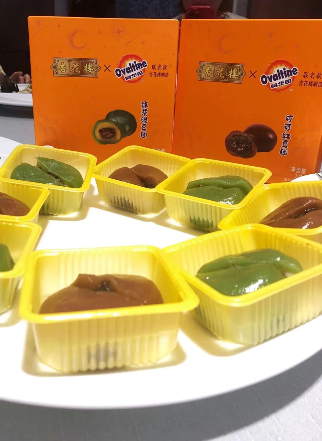 今年杏花楼推出的联名款新口味也值得一尝,可可红豆团和抹茶绿豆团,两种口味三重口感。