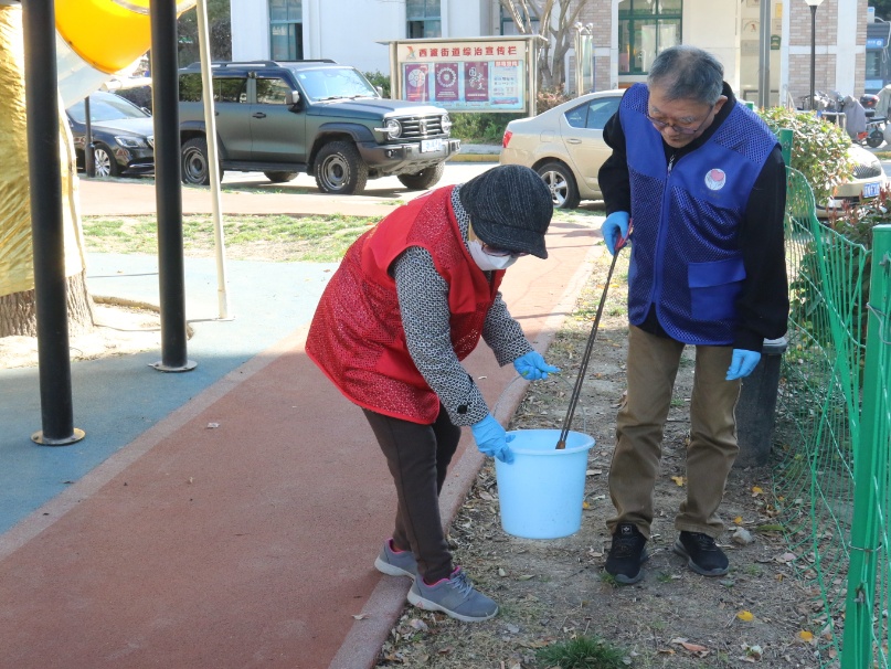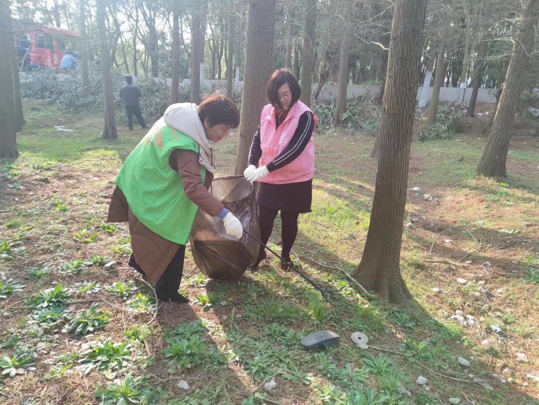 工作人员和志愿者们对涵养林、小区街镇、楼道环境卫生进行清扫、捡拾绿化带内垃圾,坚持“发现一处,清理一处”,不留卫生死角。