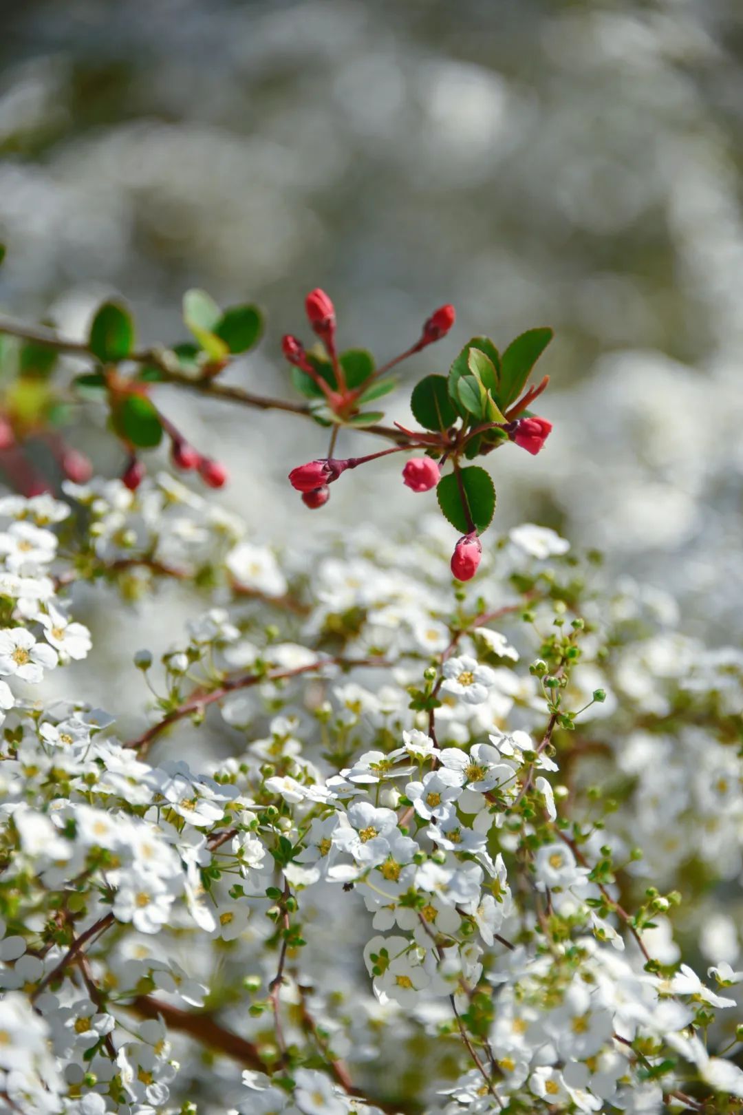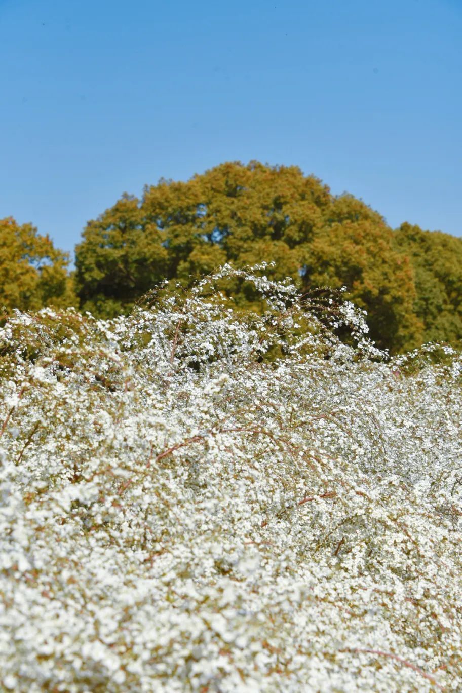 远看压枝大雪,细看珍珠小簪。珍珠绣线菊的“珍珠”二字,大概就来自它盛开的花朵——5瓣小白花,一点嫩鹅黄,总体不过6、7毫米,小指大小的mini size,简直是犯了规的可爱!