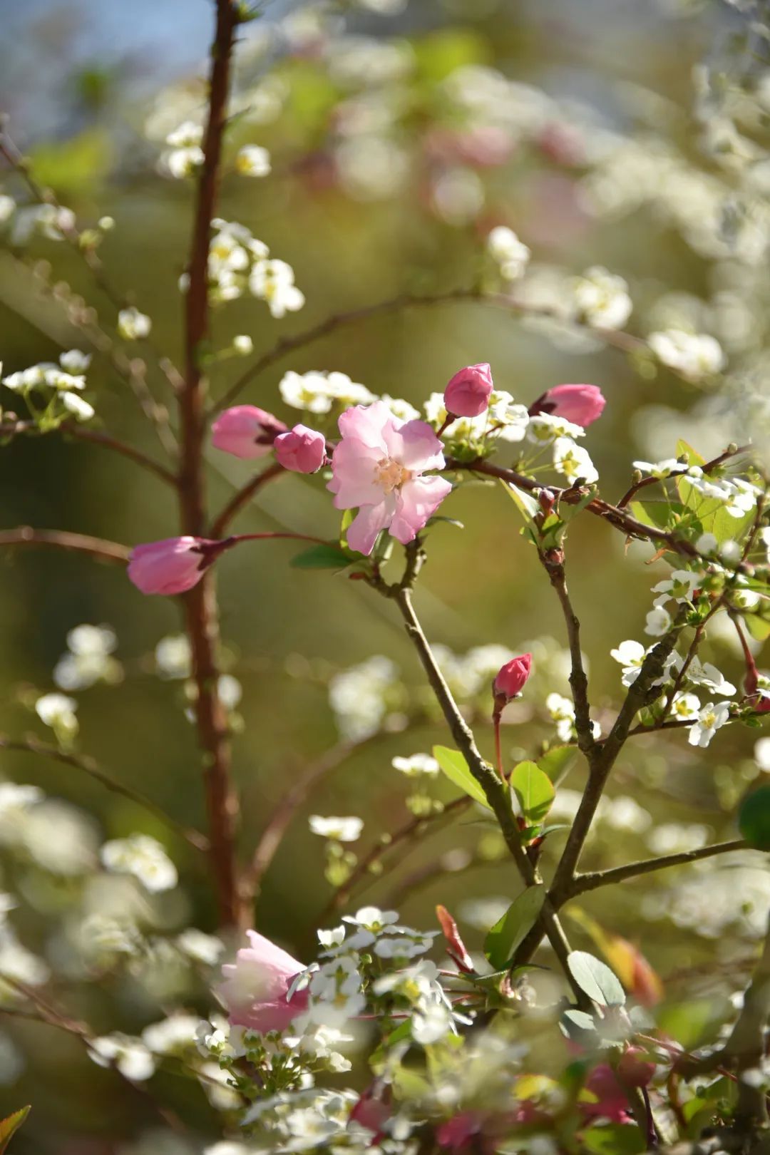 近看这些密布花朵的开花枝,就像一个手艺精巧的匠人,日以继夜的打磨镶嵌,才做出的一根点缀了无数珍珠的簪子,精致极了。