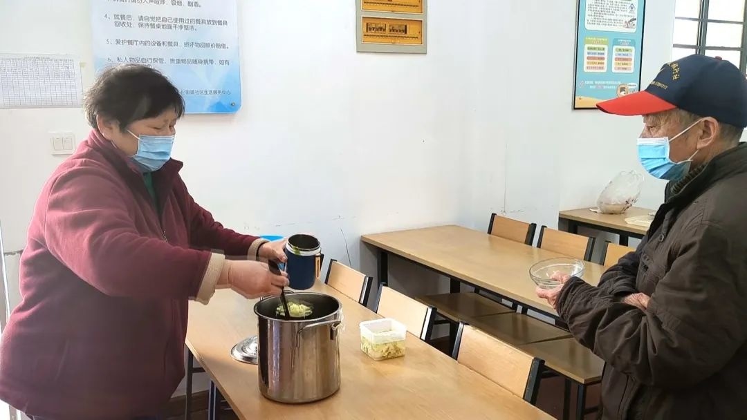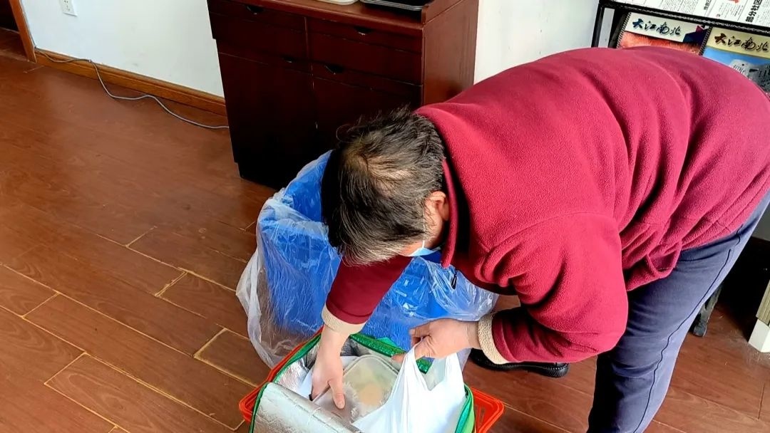 此外,考虑到气温冷热交替,部分老人不便出门,工作人员也将饭菜用保温盒打包好,挨家挨户送上门。