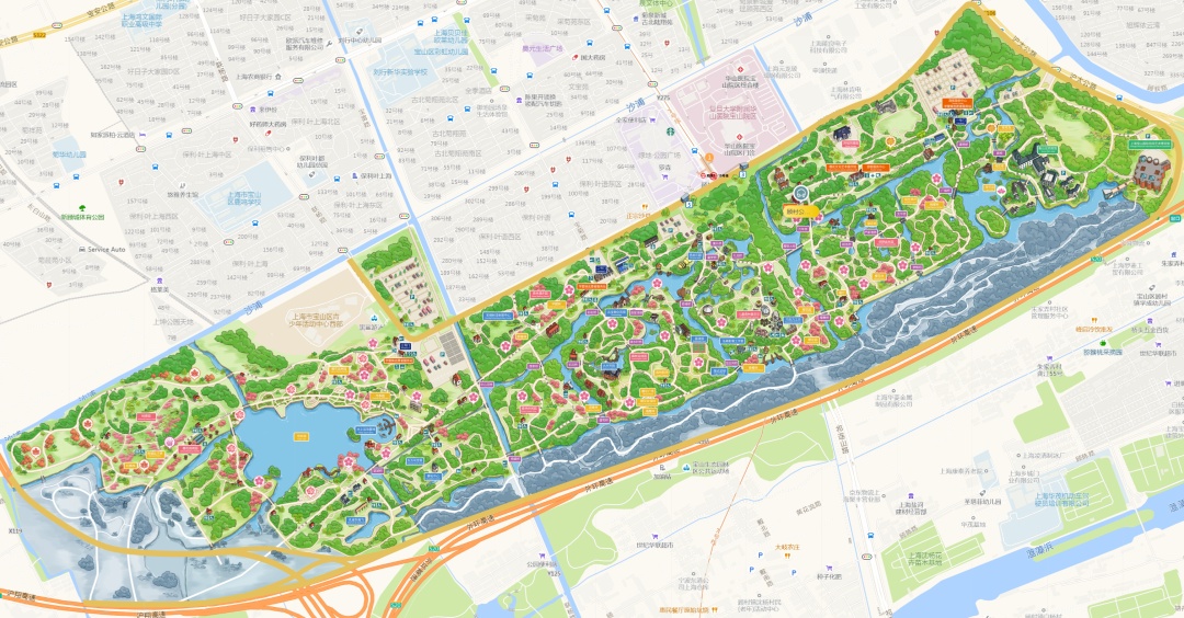 “公园里步步有花、处处有景,但乱花迷人眼,游客报警时往往难以说清自己所在的位置,很容易贻误处警的最佳时机。”民警介绍。在公园“智慧地图”上,每名游客都能看到355个彩色定位标识,其中“红黄蓝绿”四色代表了园区的不同区域,园区内灯杆上的实体标识能够在电子地图中100%对应,为不熟悉操作手机的游客提供了便利。