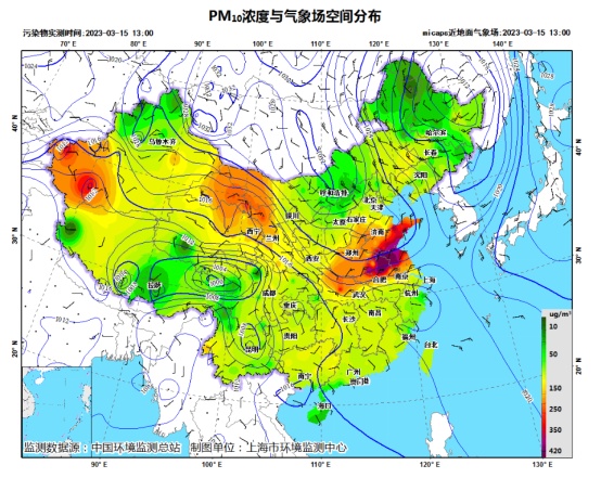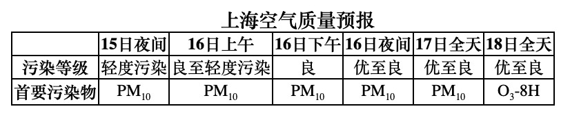 市环境监测中心、上海中心气象台介绍,14日凌晨起,受冷高压系统过境带来的大风天气影响,源自蒙古国东南部的沙尘过程自北向南影响我国东北地区南部及华北大部地区。3月15日13时沙尘气团主要影响苏皖鲁豫等地,最高PM10小时浓度出现在江苏徐州,为602微克/立方米,严重污染。根据最新会商结果,预计随冷空气南下,15日至16日,长三角中北部受沙尘输送影响,短时可达重度及以上污染水平。15日傍晚至16日早晨,沙尘东部边缘影响本市,本市空气质量短时可达中度至重度污染水平;16日下午,随着污染气团过境,本市PM10浓度逐步下降,空气质量好转至优良水平。