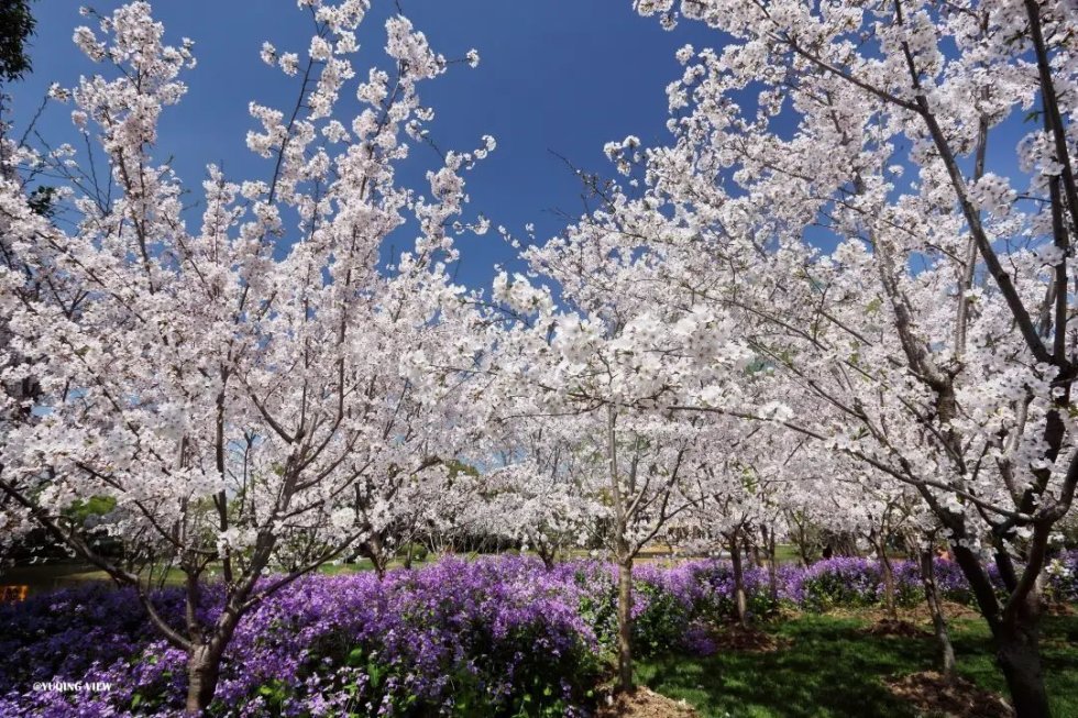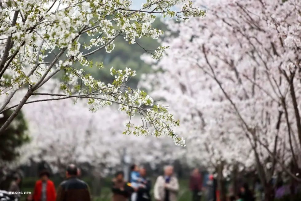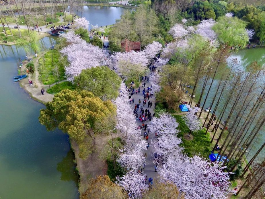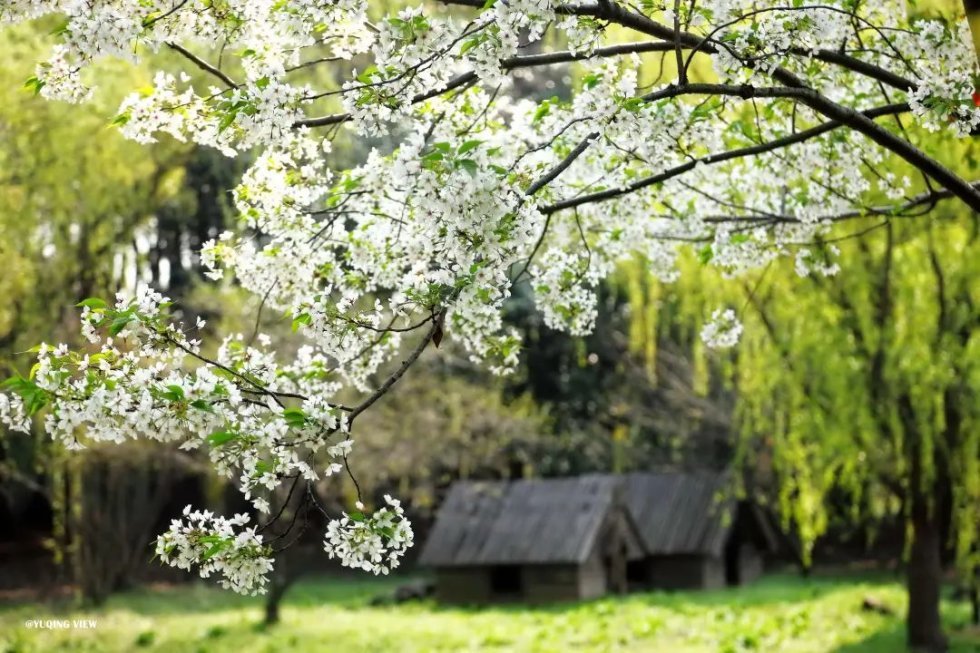 花开时节,花心底端的嫩绿衬托得整朵小花清雅脱俗。漫步樱林小道,水影婆娑,湖边嫩绿的柳丝随风飘荡,衬托着盛开的或白或粉的樱花更加剔透清雅。