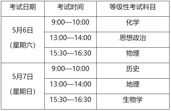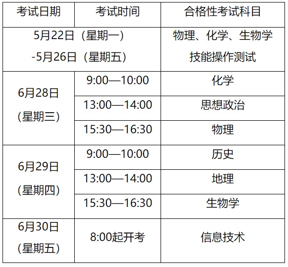 其中,物理、化学、生物学技能操作测试以及信息技术科目的具体考试时间以准考证为准。