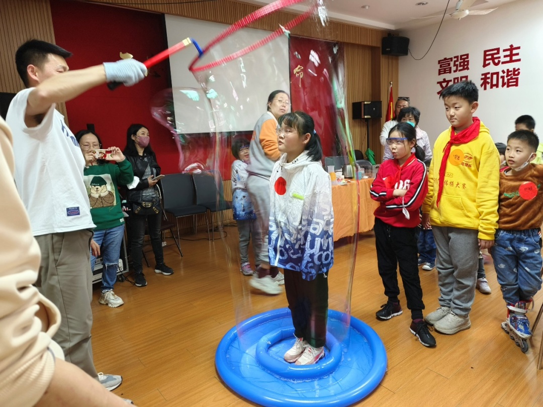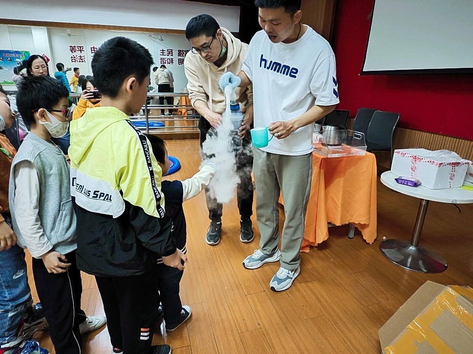 活动最后,老师带领大家进行“干冰吹气球”比赛和“干冰泡泡”体验,并告诉大家,生活中的点滴小事,都蕴含着科学道理,只要用心观察,“科学家梦”就不再遥远。