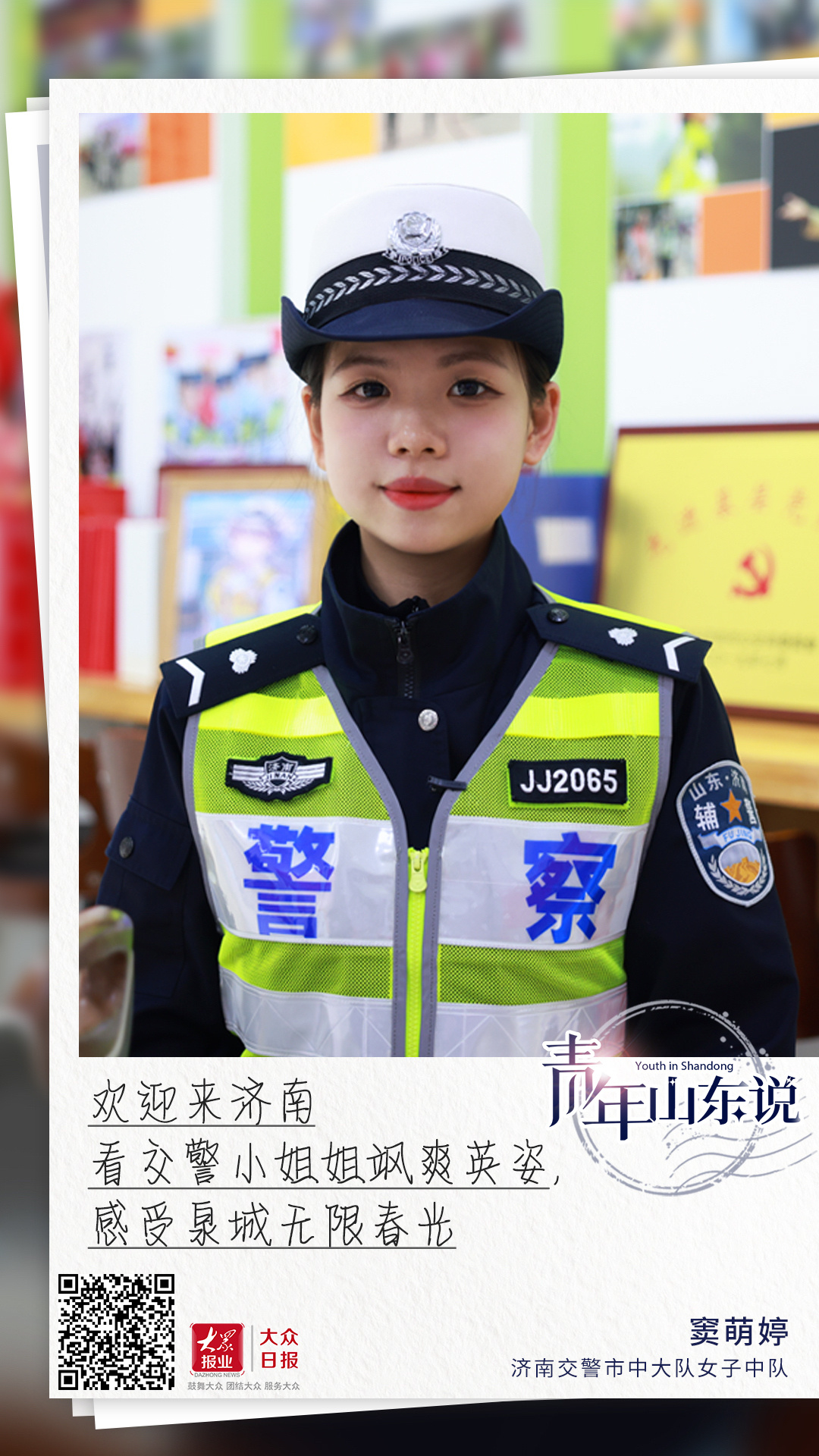 “在您需要帮助的时候,我们会永远站在您身边。欢迎大家来济南看交警小姐姐飒爽英姿,感受泉城无限春光!”窦萌婷说。