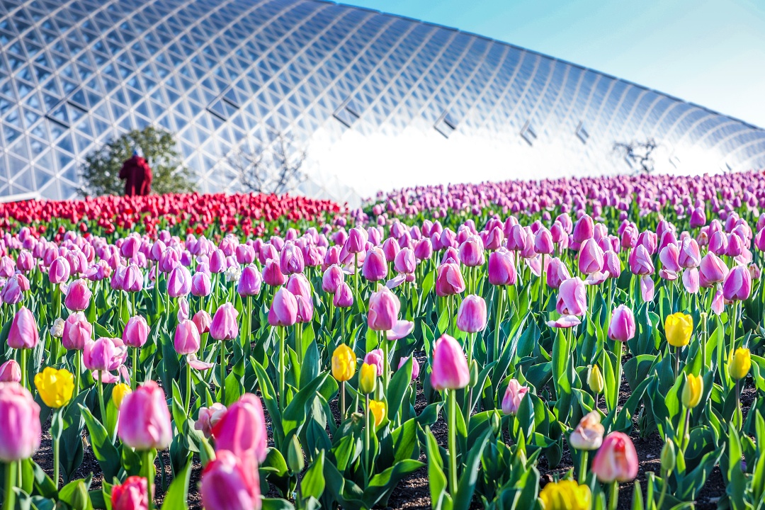 黄色、白色、紫色、粉色……上海辰山植物园的郁金香迎来多彩赏花季,预计花期将持续至4月初。随着大片的郁金香竞相绽放,缤纷绚丽的色彩仿佛打翻了大自然的调色板,为春日大地铺就了美艳动人的花毯。