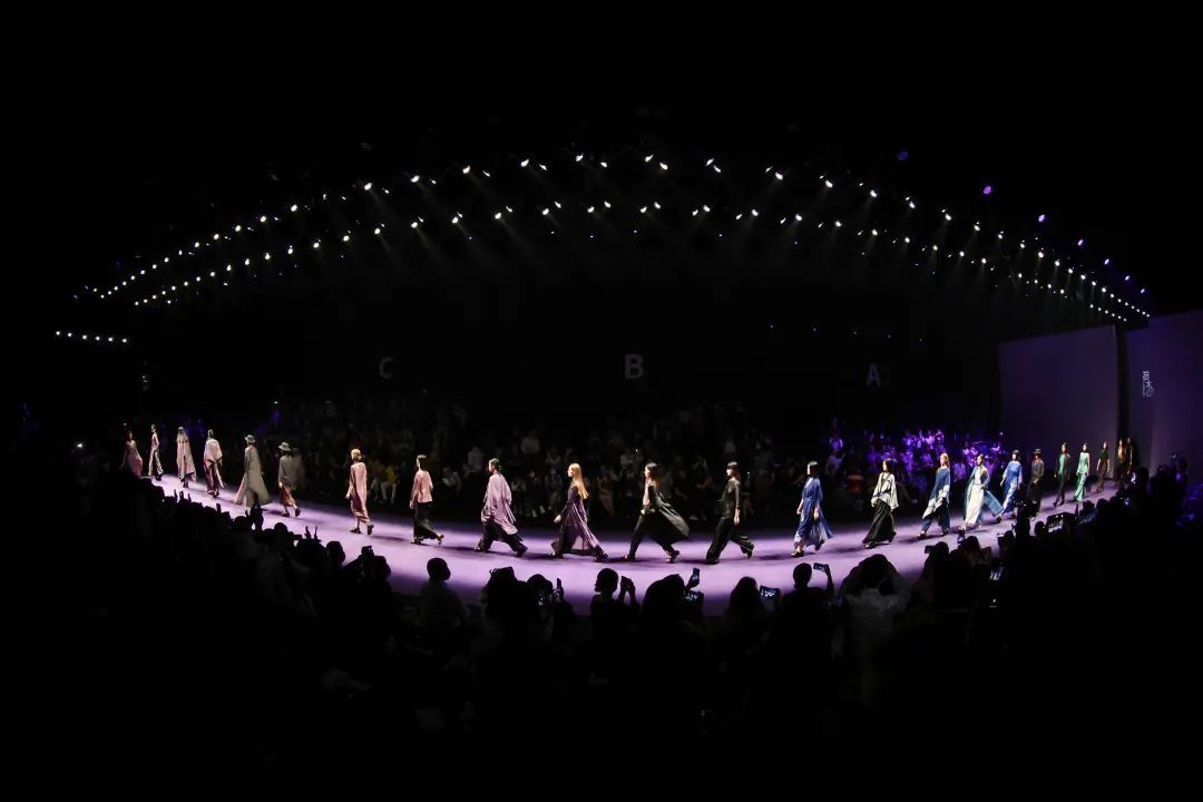 在主秀场上海新天地,“光影水上秀场”尤为引人关注,外立面采用幻彩3D材质与时装周趋势画面相融合,夜幕降临后更有燃情灯光秀点亮城市夜空,吸引潮人前来打卡。步入秀场序厅,自然生态与科技未来感相叠加的展呈布局充分烘托品牌理念,秀场数控灯光、定制化秀道、超大尺寸多媒体大屏等一系列“专业装备升级”将为嘉宾带来别开生面的观秀体验。