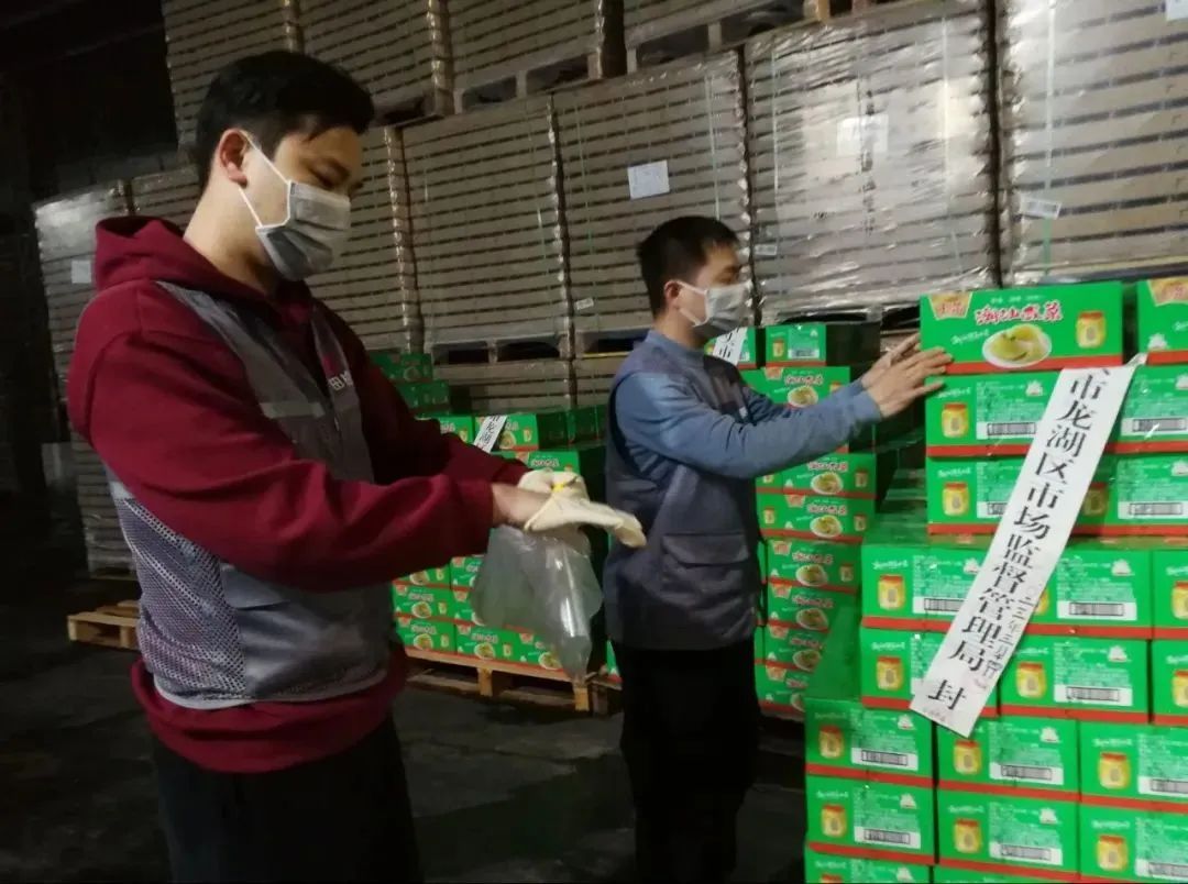 当晚,执法人员对汕头市桂盛食品有限公司、汕头市玉蕾食品实业有限公司等企业进行突击检查,针对被曝出存在食品安全问题的产品,执法人员对其进行抽样检查和查封处理。
