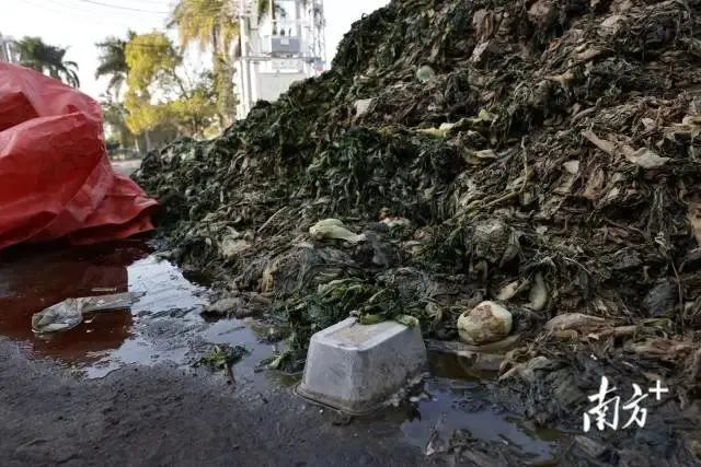 ▲ 堆积数天的芥菜混杂着污水和垃圾