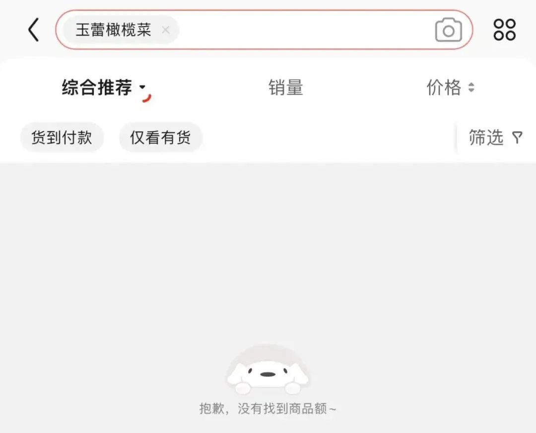 记者注意到,目前天猫超市、京东、多点、盒马等多个电商平台已无法搜索“玉蕾橄榄菜”。
