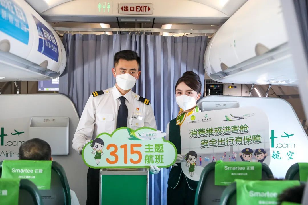 在3.15国际消费者权益日到来之际,上海市市场监督管理局机场分局、上海市消费者权益保护委员会空港办公室与春秋航空共同打造了一个以“消费维权进客舱 安全出行有保障”为主要内容的3.15主题航班,紧紧围绕“提振消费信心”消费维权年主题,以提醒“出行消费、异地消费”需要注意的事项为着力点,为广大旅客营造安全放心的消费环境。