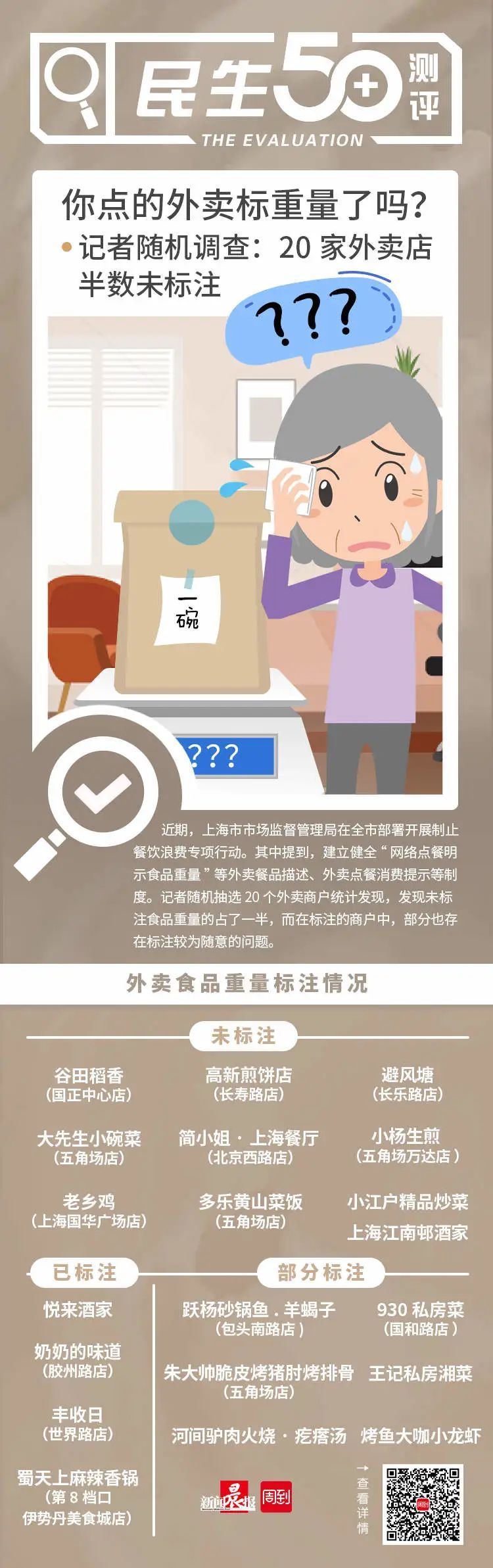“现在标注份量的外卖挺多的。”家住杨浦的李阿婆平时在家烧饭,但如果哪天与姐妹约出去玩了,晚上回家路上就会提前点好外卖。“我点的那家,现在每个菜,用什么材料多少克都会标清楚的。”