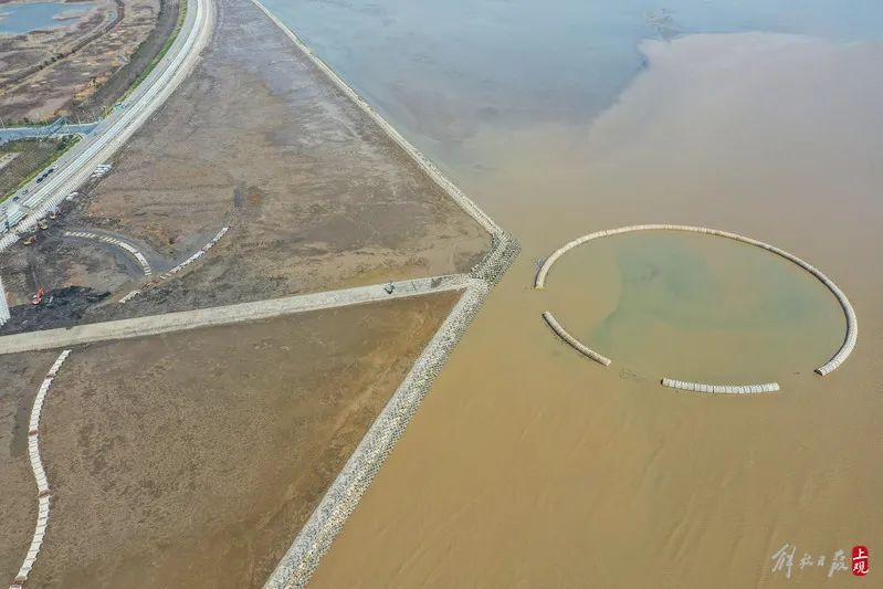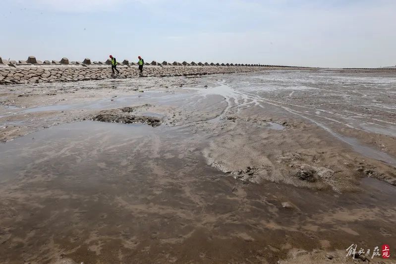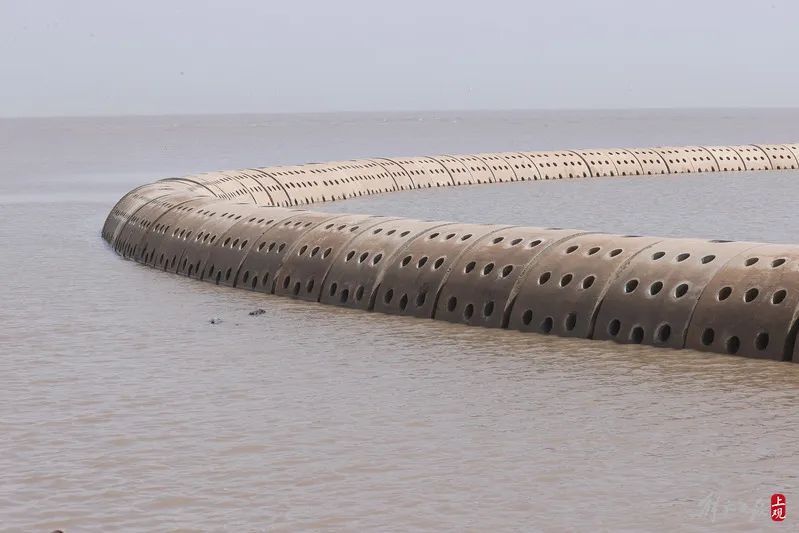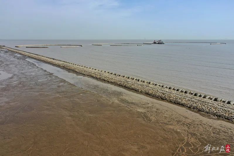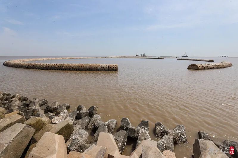 堤前消浪坝修复,长度2.78千米,主要对原有消浪坝进行修复,目前已全部完成,主要工作包括块石抛投和整理、袋装碎石垫层、扭王字块安装和混凝土顶嵌块石施工。