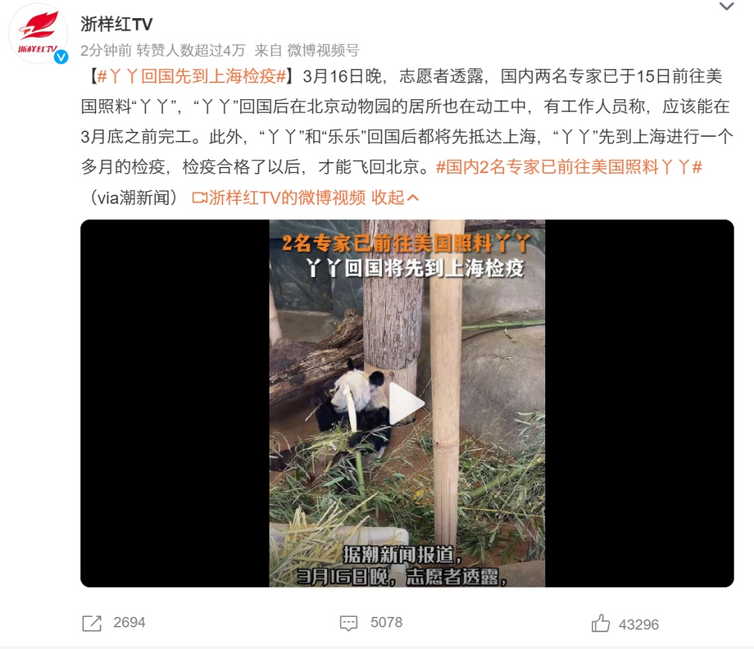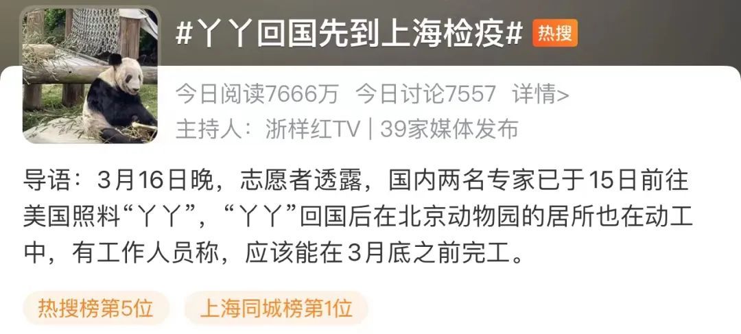 而据顶端新闻消息,3月16日晚他们联系到了丫丫所属的北京动物园上级部门——北京市公园管理中心,该中心工作人员回应:3月15号专家已经抵达美国,正在展开工作。