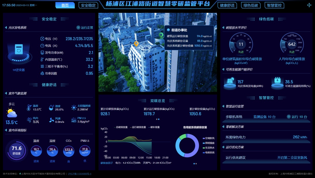 经改造之后,大楼面貌焕然一新,室内环境明显改善,用能水平进档升位,形成了以“能源可自给、物联可感知、零碳可持续、示范可推广”为特色的基层公共建筑零碳改造实施路径,为杨浦践行绿色发展理念谱写新篇章。