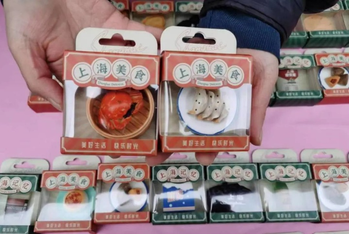 除此之外,蝴蝶酥、大闸蟹、上海辣酱油、生煎小笼......充满上海记忆的文创产品,格外受小朋友们的喜爱。