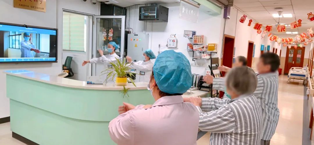 “上午,我一般就在病房里自己跟着练。每天下午三点,护士会带着我们跟着大屏幕集体练习。这和我原先想象的住院生活完全不一样,蛮开心的。”