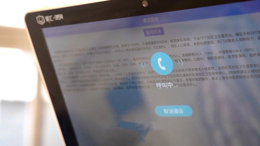 唐阿姨口中的“小家伙”,是一块平板电脑大小的电子屏幕——“病房交互系统”,简称“智慧屏”。自去年8月正式被引入该街道社区卫生服务中心病房后,因其智能化的视化语音呼叫系统,个性化的健康宣教推送,成为了医患之间的“得力小助手”。