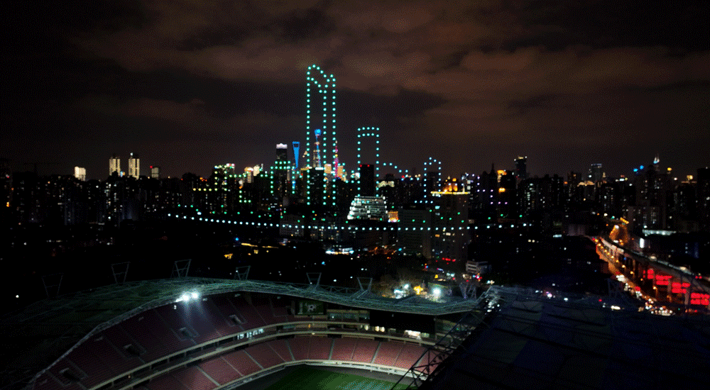 300架无人机升腾而起,如灵动的飞鸟,似绚烂的烟花,不断变化着阵型,为在虹口足球场开启的这场樱花“盛会”打call。